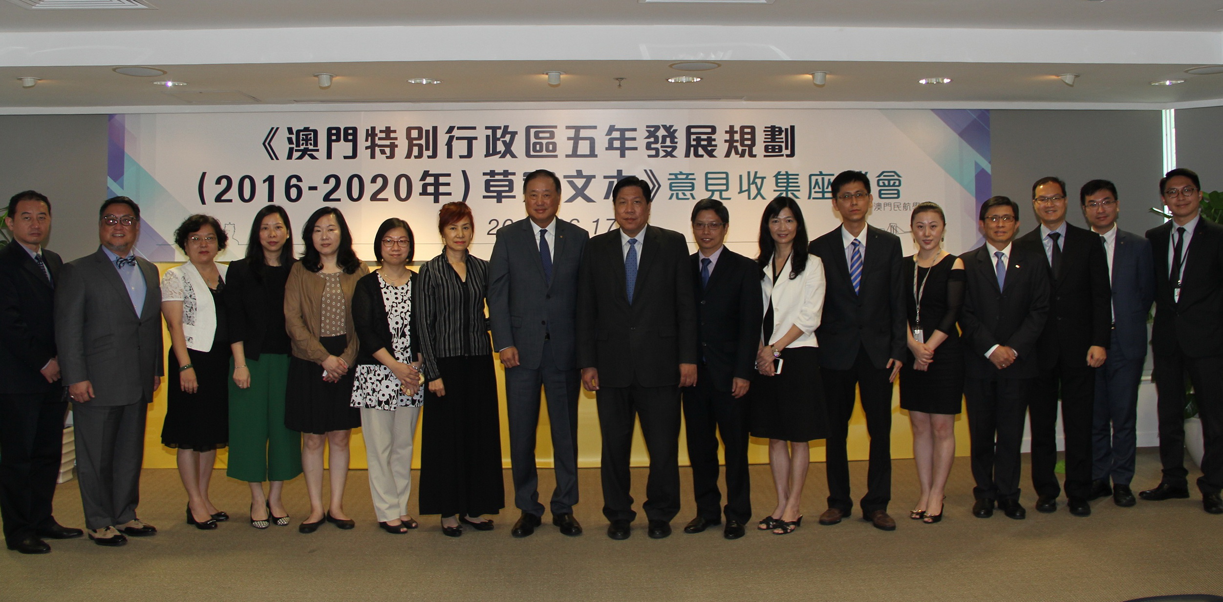 O coordenador do gabinete de Estudos das Políticas Lao Pun Lap e respectivos investigadores, estiveram presentes no colóquio sobre o projecto do Plano Quinquenal de Desenvolvimento da RAEM (2016-2020), organizado pelo Instituto de Aviação Civil de Macau, que teve lugar na manhã de hoje (17 de Junho), no edifício da CAM, no qual efectuaram uma breve introdução sobre o conteúdo do projecto do Plano Quinquenal, bem como procederam à interacção e ao intercâmbio com os participantes.