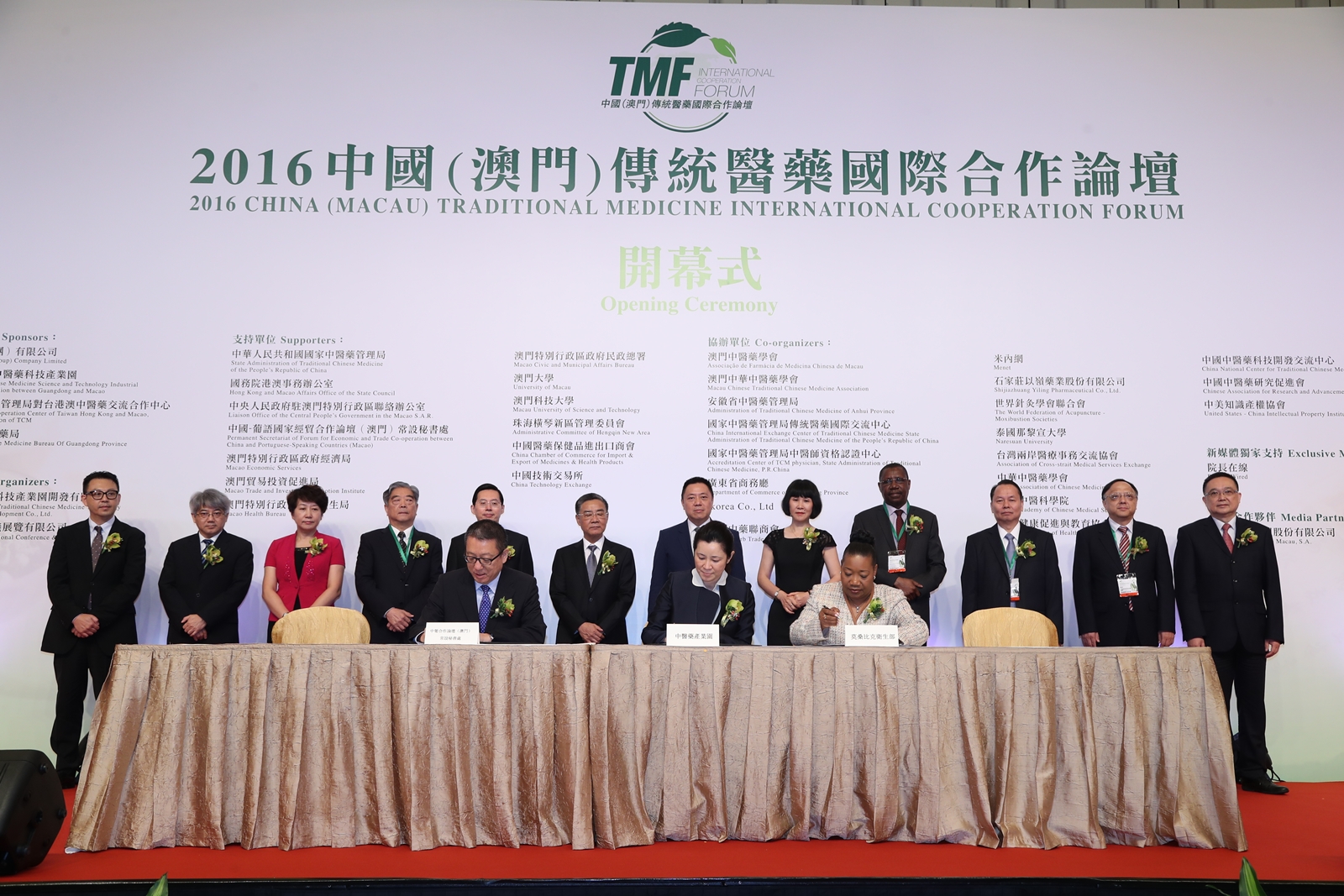 No seguimento do primeiro Fórum de Cooperação Internacional de Medicina Tradicional, organizado pelo Parque Científico e Industrial de Medicina Tradicional Chinesa para a Cooperação entre Guangdong-Macau (doravante designado por Parque), hoje (dia 28), voltou a ter lugar, no Venetian-Macao-Resort-Hotel, o evento do Fórum de Cooperação Internacional de Medicina Tradicional 2016 (Macau), organizado conjuntamente pelo Parque, pela Nam Kwong União Comercial e Industrial, Limitada, pelo Centro para Intercâmbio de Medicina Tradicional Chinesa para Taiwan, Hong Kong e Macau, junto da Administração Nacional para Medicina Tradicional Chinesa, e pelo Serviço de Medicina Tradicional Chinesa da Província de Guangdong. Na cerimónia de abertura, o Secretário para a Economia e Finanças do Governo da Região Administrativa Especial de Macau, Leong Vai Tac entregou certificados aos especialistas internacionais contratados pela Comissão dos Consultores do Parque; paralelamente, o Parque assinou acordos de cooperação com os Países da Língua Portuguesa e as suas autoridades relacionadas, as empresas de renome e as instituições académicas e associações relacionadas, de forma a aumentar gradualmente a capacidade global do Parque. Mais de 600 participantes presentes provenientes de países e regiões como o Interior da China, Hong Kong, Macau, Taiwan, os Estados Unidos, Portugal, Holanda e Tailândia, inclusive peritos e estudiosos em Medicina Tradicional e gerentes de empresas de renome, trocaram opiniões referentes à cooperação e intercâmbio internacionais de Medicina Tradicional em concordância com a iniciativa de “Uma Faixa, Uma Rota”, tendo em consideração o programa geral do desenvolvimento exterior da Medicina Tradicional Chinesa (doravante designada por MTC) durante o período do 13.º Plano Quinquenal da República Popular da China. Na cerimónia de abertura, o Secretário para Economia e Finanças da RAEM, Dr. Leong Vai Tac, o Vice-Director da Administração Nacional para Medicina Tradicional Chinesa, Dr. Ma Jianzhong, o Vice-Presidente da Nam Kwong União Comercial e Industrial Limitada, Dr. Ding Rongxiang, e o membro do Comité do Partido Comunista Chinês da Comissão de Saúde e de Planeamento Familiar da Província de Guangdong e o Diretor do Gabinete da Medicina Tradicional Chinesa da Província de Guangdong, Dr. Xu Qingfeng, fizeram discursos. O Secretário, Dr. Leong Vai Tac, e o Vice-Director, Dr. Ma Jianzhong, elogiaram nos discursos o papel desempenhado por Macau como ponto de encontro da cultura chinesa e portuguesa e como cabeça-de-ponte da iniciativa de “Uma Faixa, Uma Rota”, reconhecendo ainda os trabalhos feitos pelo Parque, o qual serve como uma plataforma importante dedicada a promover a diversificação equilibrada e sustentável da economia de Macau e da cooperação internacional de Medicina Tradicional, na expectativa de que o Parque, sendo uma plataforma internacional, continue a aproveitar as suas vantagens para promover, a nível mundial, os produtos e tecnologias da MTC. O Parque obteve novos avanços Na cerimónia de abertura, o Secretário Leong entregou certificados aos peritos internacionais, a saber: Dr.ª Prof.ª Wang Mei, membro da Comissão da Farmacopeia Europeia da Direcção Europeia da Qualidade dos Medicamentos e Cuidados de Saúde (EDQM, na sigla em inglês), Dra. Helena Pinto Ferreira, membro da Comissão da Farmacopeia Portuguesa, Dra. Maria do Céu Gonçalves da Costa, Vice-Presidente da Sociedade Portuguesa de Fitoquímica e Fitoterapia, e Dr. Prof. Wang Yitao, do Instituto de Ciências Médicas Chinesas da Universidade de Macau, contratados pelo Comité Consultivo de Peritos do Parque. Até ao momento, estão no Comité treze peritos chineses e estrangeiros, que em conjunto prestam apoio técnico de modo significativo no avanço dos projectos do Parque. Paralelamente, sendo o Secretário para a Economia e Finanças, Dr. Leong Vai Tac, o Vice-Director da Administração Nacional para Medicina Tradicional Chinesa, Dr. Ma Jianzhong, o Sub-Director do Departamento para os Assuntos Económicos do Gabinete de Ligação do Governo Central da República Popular da China na RAEM, Dr. Zhu Hong, o Vice-Presidente da Nam Kwong União Comercial e Industrial Limitada, Dr. Ding Rongxiang, o Secretário-Geral do Fórum para a Cooperação Económica e Comercial entre a China e os Países de Língua Portuguesa, Dr. Chang Hexi e o Cônsul-Geral da República de Moçambique na RAEM, Dr. Rafael Custodio Marques como testemunhas, o Parque assinou acordos de cooperação com governos dos Países de Língua Portuguesa e as suas autoridades competentes, as empresas de renome do Interior da China e as instituições académicas e associações relacionadas, incluindo a assinatura dos Memorandos de Entendimento de Cooperação com o Ministério da Saúde de Moçambique e com o Secretário Permanente do Fórum para a Cooperação Económica e Comercial entre a China e os Países de Língua Portuguesa (Macau), a assinatura do Acordo-Quadro de Cooperação com a Shijiazhuang Yiling Pharmaceutical Co., Ltd. para expandir a exposição no mercado internacional, a assinatura dos Acordos de Cooperação com a Associação do Comércio da Planta Medicinal Chinesa dos EUA (em inglês: Chinese Herb Trade Association of America) e com a Sociedade Portuguesa de Fitoquímica e Fitoterapia, e a assinatura dos Memorandos de Entendimento de Cooperação com a Escola Brasileira de Medicina Chinesa e com a Universidade de Naresuan de Tailândia. A assinatura dos acordos com as autoridades e instituições prevê estabelecer uma base sólida para a integração dos recursos da indústria e a construção de plataformas de investigações tecnológicas, formação e intercâmbio internacional, registo internacional e comércio de serviços, assim prestando apoio firme à exportação dos produtos de boa qualidade feitos pelas empresas do Parque, o que ajud