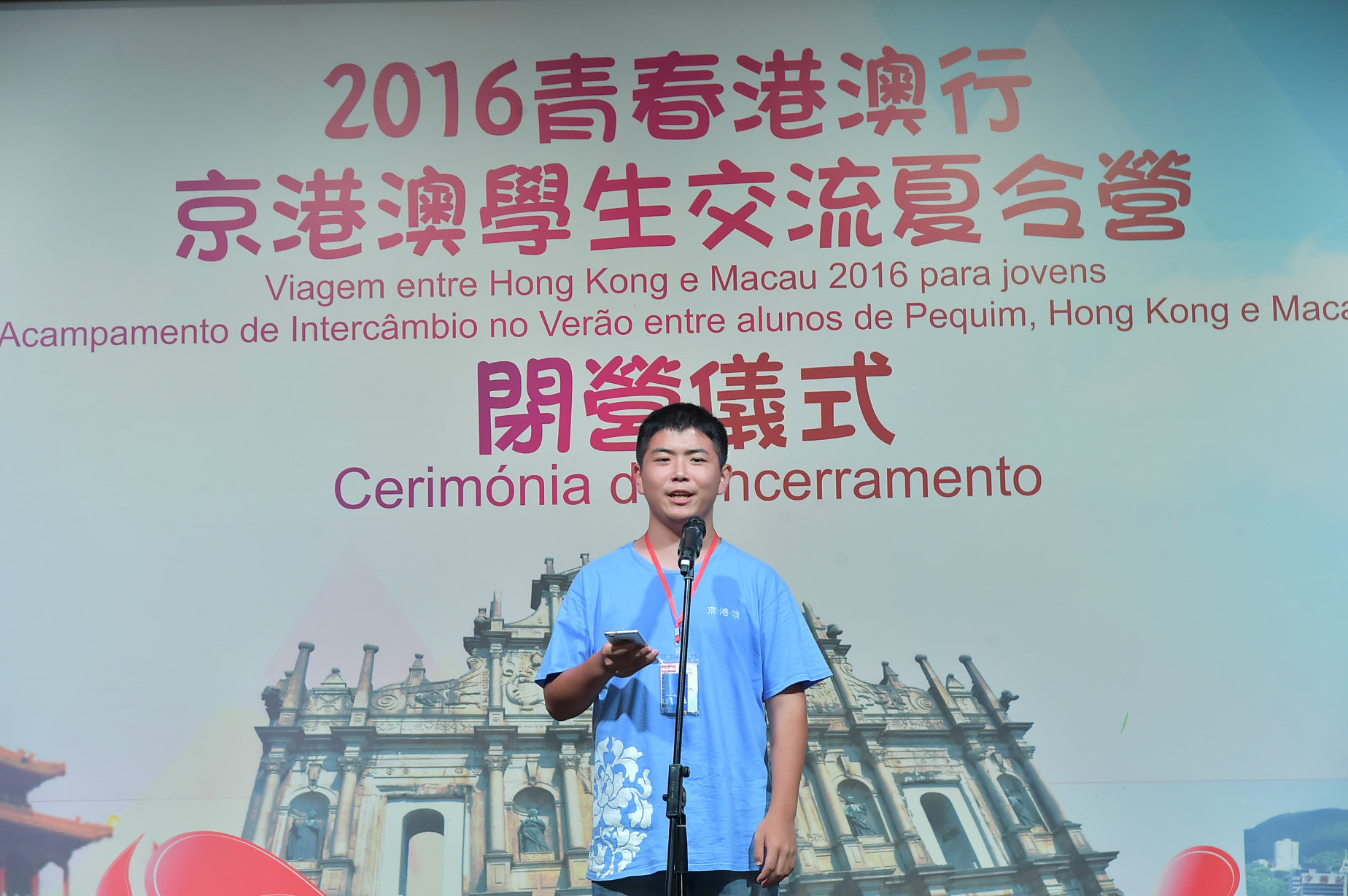 Com o intuito de cultivar nos alunos de Macau, de uma forma contínua, o amor pela Pátria, reforçar ainda mais a comunicação entre os alunos de Pequim, Hong Kong e Macau, enriquecer as suas vidas durante o Verão e ampliar os seus horizontes, o Conselho de Educação de Pequim, a Direcção dos Serviços de Educação e Juventude (DSEJ) da Região Administrativa Especial de Macau (RAEM) e os Serviços de Educação da Região Administrativa Especial de Hong Kong (RAEHK) organizaram, em conjunto, a “Viagem entre Hong Kong e Macau 2016 para jovens – Acampamento de intercâmbio no Verão entre alunos de Pequim, Hong Kong e Macau”, que se realizou com sucesso em Hong Kong e Macau, entre 23 e 29 de Julho.