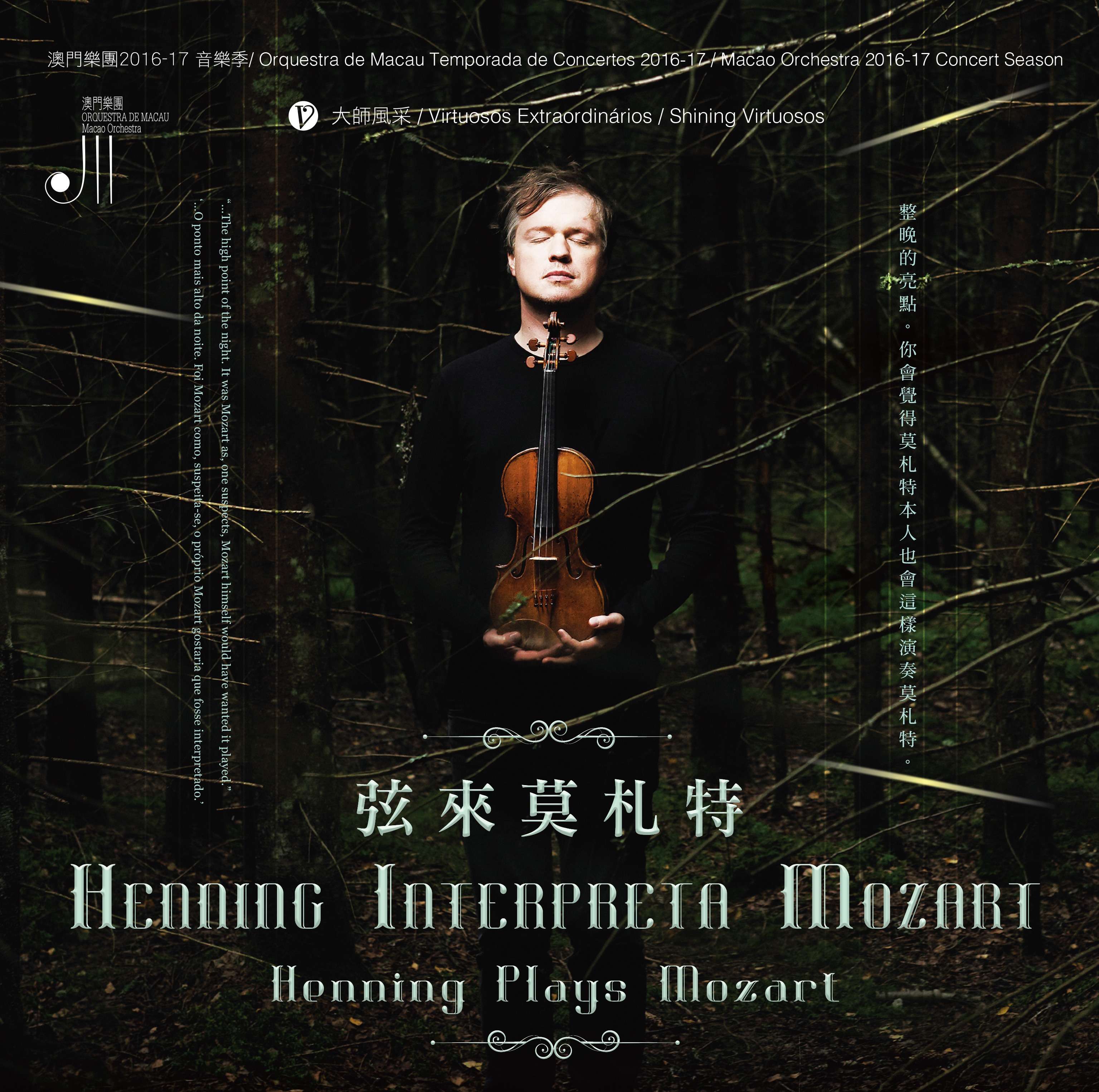 A Orquestra de Macau (OM), sob a égide do Instituto Cultural, apresenta o concerto "Henning Interpreta Mozart", no dia 12 de Novembro (Sábado), no Grande Auditório do Centro Cultural de Macau. Sob a batuta do Director Musical da Orquestra, Lü Jia, a OM convida o notável violinista norueguês Henning Kraggerud para interpretar de solo no concerto. Os bilhetes encontram-se à venda na Bilheteira Online de Macau.