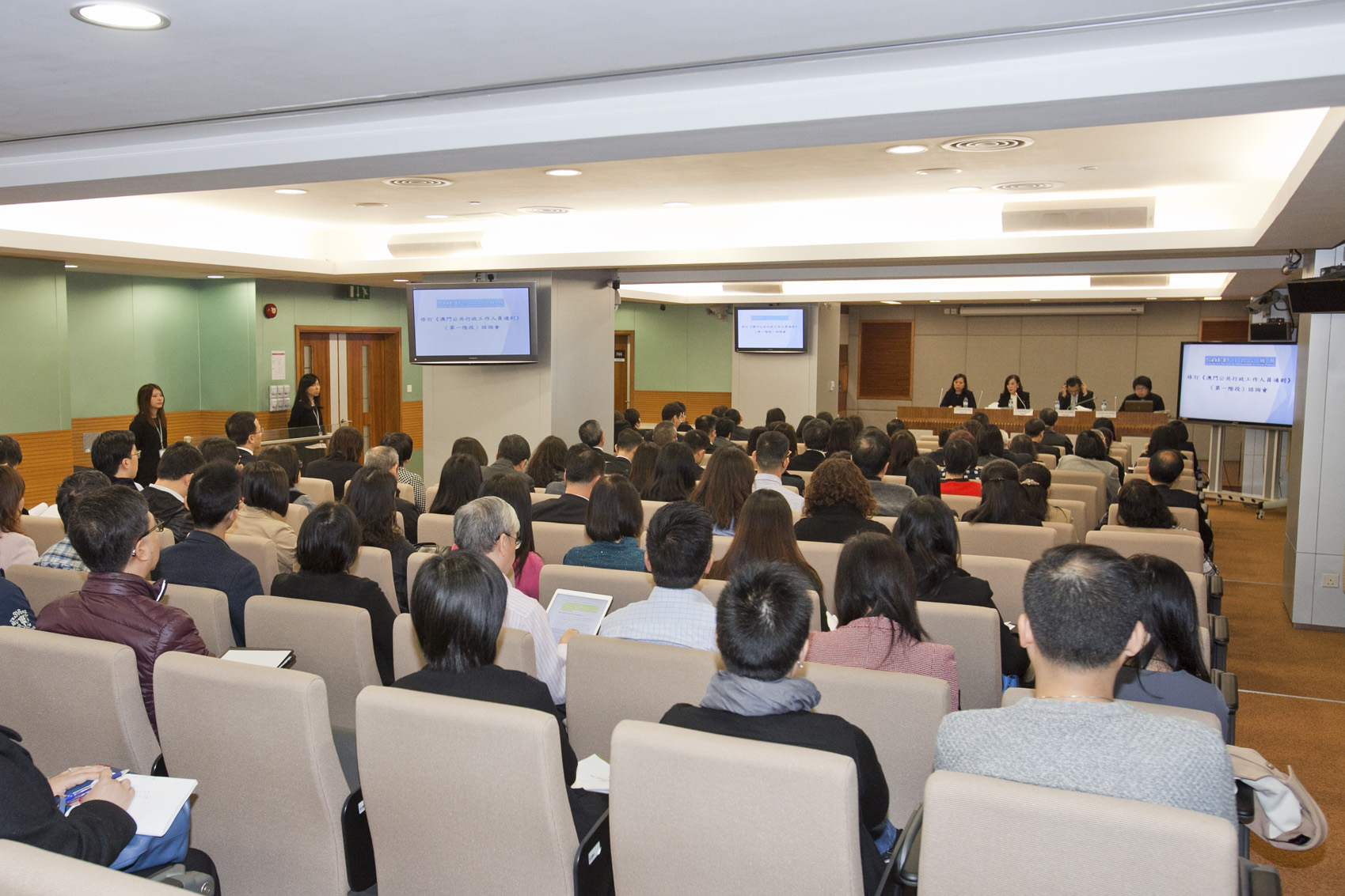 A fim de melhor aperfeiçoar esta legislação, no dia 15 de Novembro, o SAFP começou a consultar os trabalhadores da função pública, tendo-se realizado já 4 sessões de esclarecimento destinadas aos serviços públicos, trabalhadores da função pública e associações dos trabalhadores da função pública, para apresentar o conteúdo da revisão e, em simultâneo, auscultar as suas opiniões. Nas 4 sessões de esclarecimento, houve no total mais de 400 participantes.