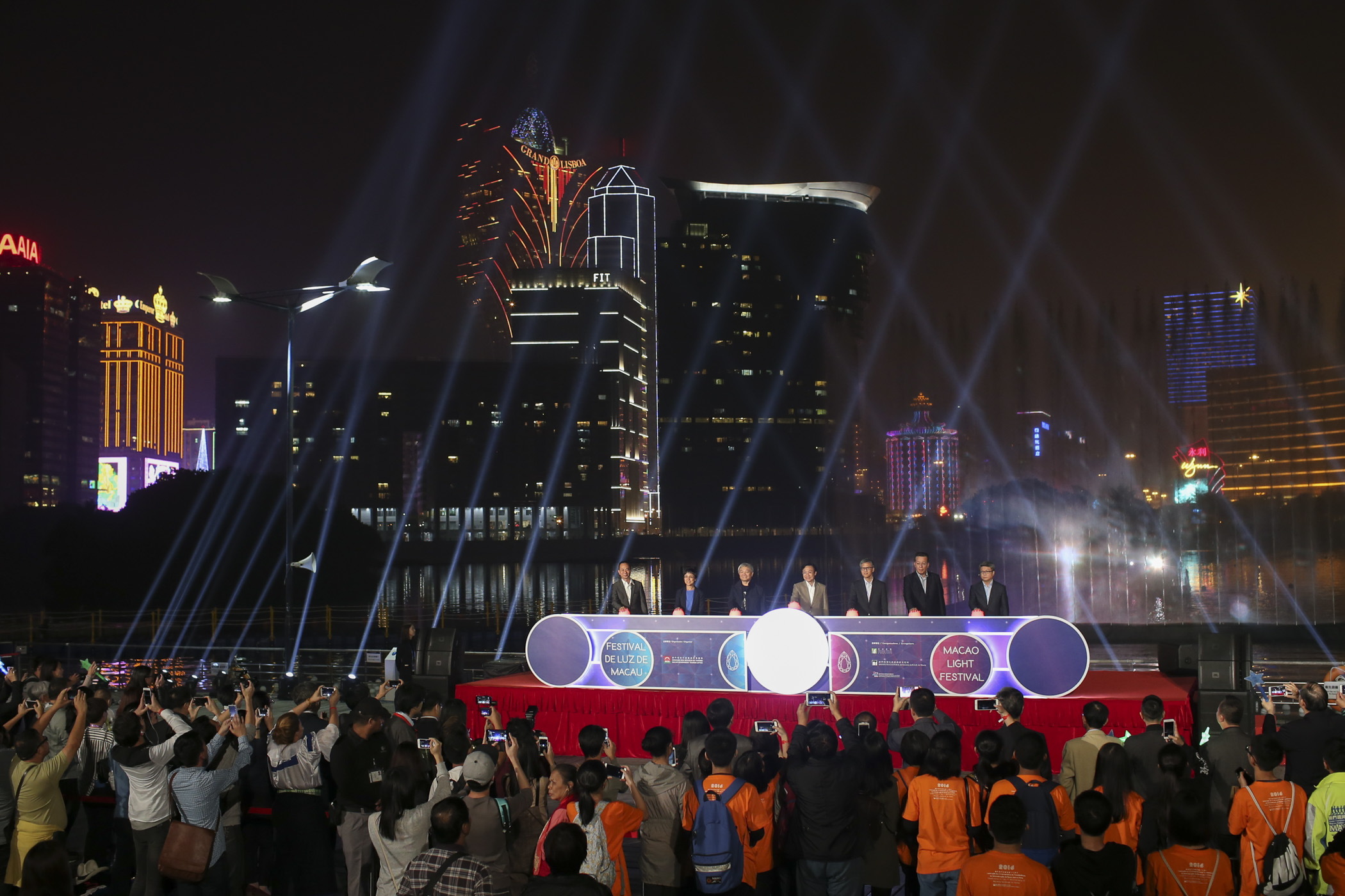 O Secretário para os Assuntos Sociais e Cultura, Alexis Tam, o membro do Conselho Executivo da RAEM, Chan Chak Mo, o chefe do Gabinete do Secretário para os Assuntos Sociais e Cultura, Ip Peng Kin, a directora da DST, Maria Helena de Senna Fernandes, o presidente do Conselho de Administração do IACM, José Tavares, o presidente do IC, Ung Vai Meng, e o presidente do Instituto do Desporto (ID), Pun Weng Kun, presidiram à cerimónia de abertura iluminando os oito pontos de atracção do evento. Na ocasião foi exibido o espectáculo de projecção de vídeo mapping na água, “Navegação”. Num discurso durante a cerimónia de abertura, a directora da DST referiu que, no dia da abertura do “Festival de Luz” foi também realizada a Maratona Internacional de Macau e o “Desfile por Macau, Cidade Latina”, mostrando a apelativa diversidade de eventos de Macau. A DST continuará a reforçar a cooperação com o IC e o ID, no desenvolvimento de produtos turísticos e eventos diversificados, para criar mais sinergias e promover em conjunto o desenvolvimento do turismo desportivo, do turismo cultural e do turismo de eventos. A directora da DST espera que o “Festival de Luz de Macau” consiga, uma vez mais, atrair visitantes de várias partes do mundo a Macau, para assinalar em conjunto o 17.° aniversário da Região Administrativa Especial de Macau e as férias de Natal.
