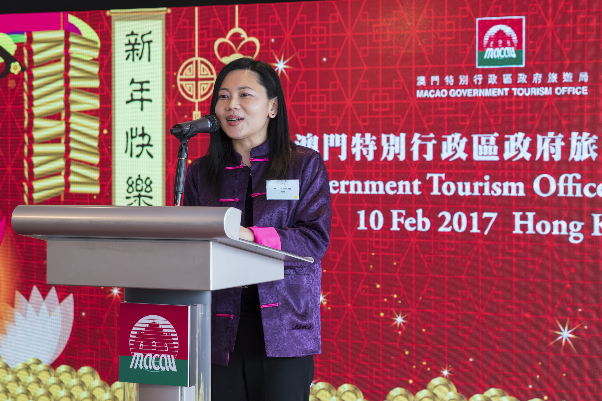 No discurso proferido na ocasião, a subdirectora da DST agradeceu o apoio dado pelos operadores turísticos de Hong Kong à indústria turística de Macau, desejando progresso aos convidados e um próspero desenvolvimento para a indústria turística no novo ano. Em 2016, Macau recebeu um total de 30 milhões de visitantes. Hong Kong continua a ser o segundo maior mercado de visitantes para Macau, tendo mais de 6,4 milhões de residentes da Região Administrativa Especial vizinha visitado Macau no ano passado, uma ligeira descida de 1,8 por cento em relação a 2015, tendo o número de hóspedes de Hong Kong nos hotéis e pensões aumentado 17,8 por cento.