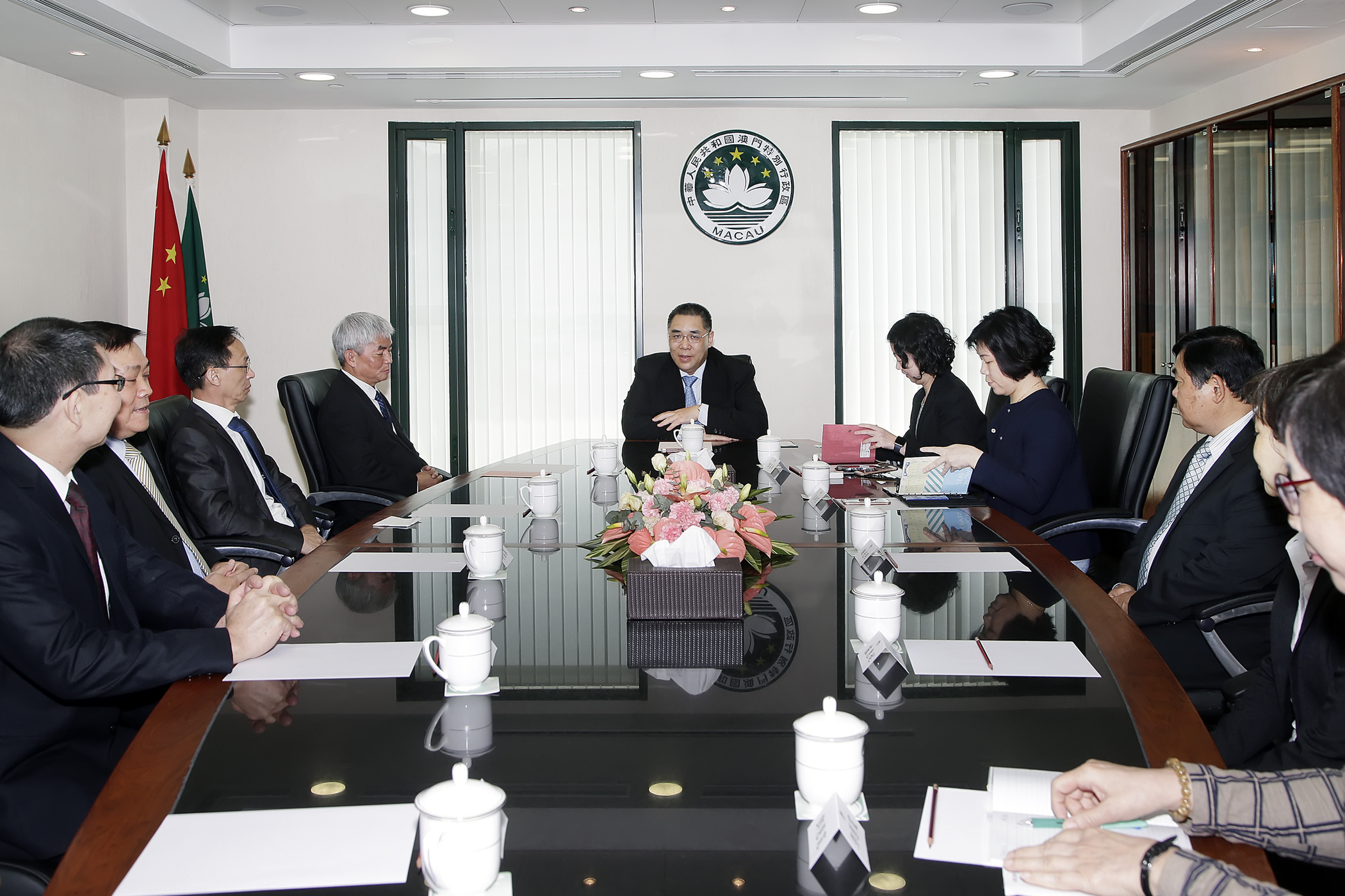 O Chefe do Executivo, Chui Sai On, recebeu, hoje (5 de Abril), na Sede do Governo, o presidente da Associação de Auxílio Mútuo de Vendilhões de Macau, O Seng Lok, e restantes representantes, onde trocaram opiniões sobre a situação de exploração de negócios dos vendilhões e o aperfeiçoamento do ambiente de negócios.