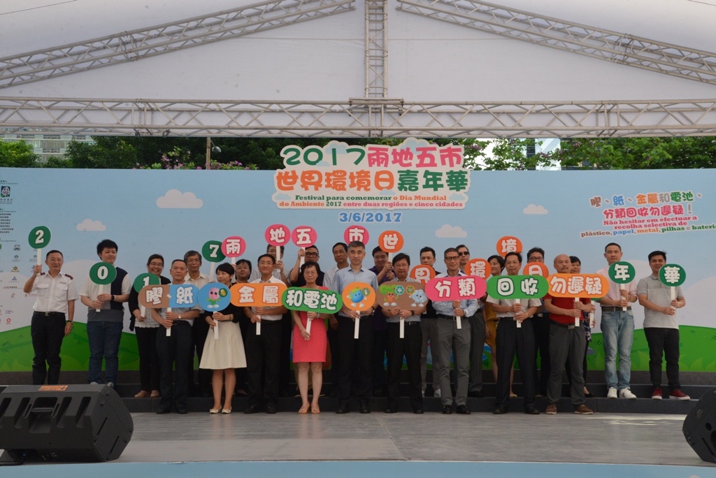 Teve lugar hoje (dia 3 de Junho) à tarde o “Festival para comemorar o Dia Mundial do Ambiente 2017 entre duas regiões e cinco cidades” pela Direcção dos Serviços de Protecção Ambiental (DSPA) na Praça da Amizade. Focado no tema “Não hesitar em efectuar a recolha selectiva de plástico, papel, metal, pilhas e baterias”, a intenção desta actividade é unir todos os sectores no incentivo às acções da “Redução de resíduos a partir da fonte e recolha selectiva de materiais recicláveis”.