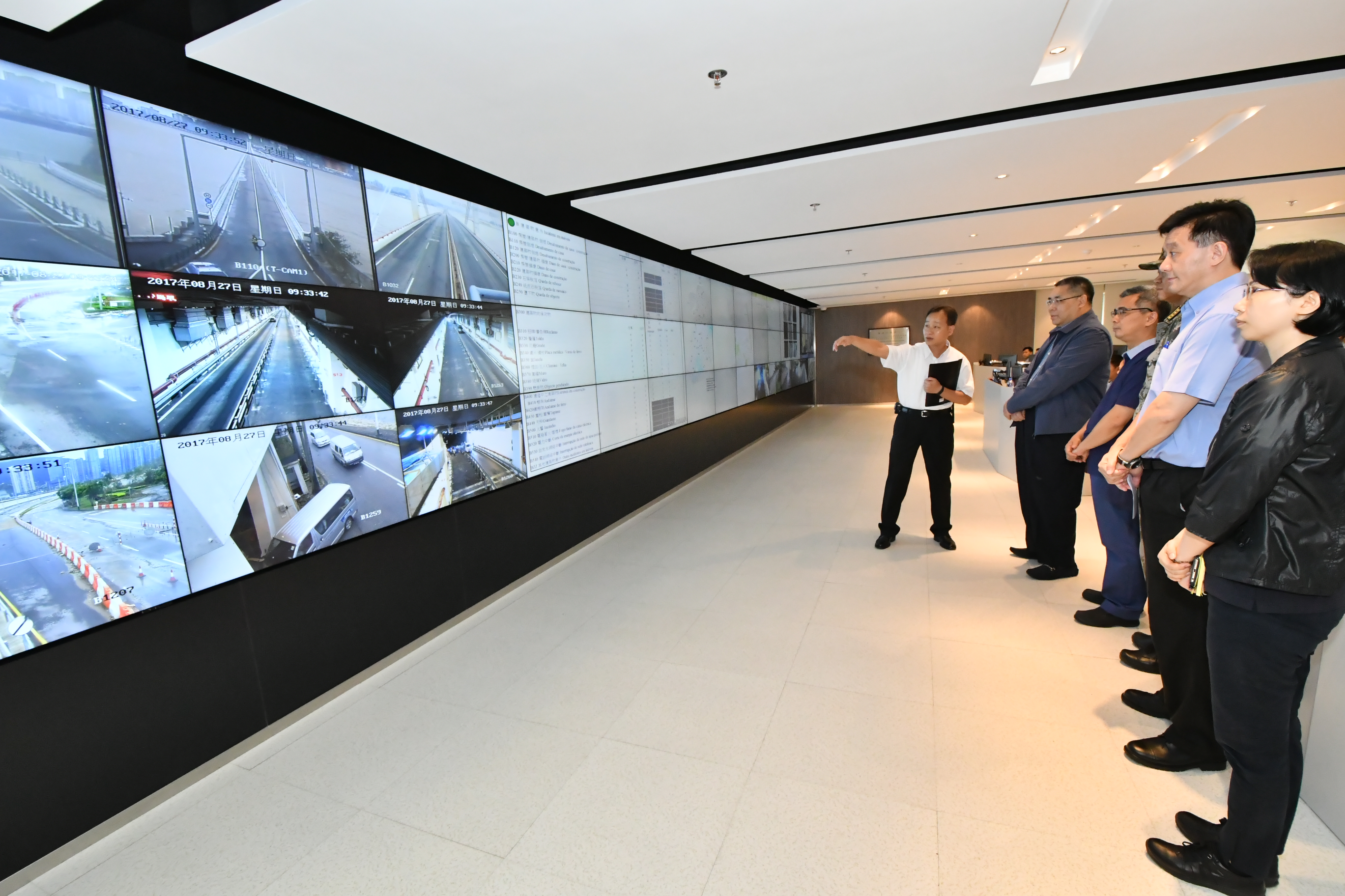 De seguida, o Chefe do Executivo visitou o centro de controlo do COPC, que seguia e analisava a situação das ruas através da plataforma de informação real de incidentes.