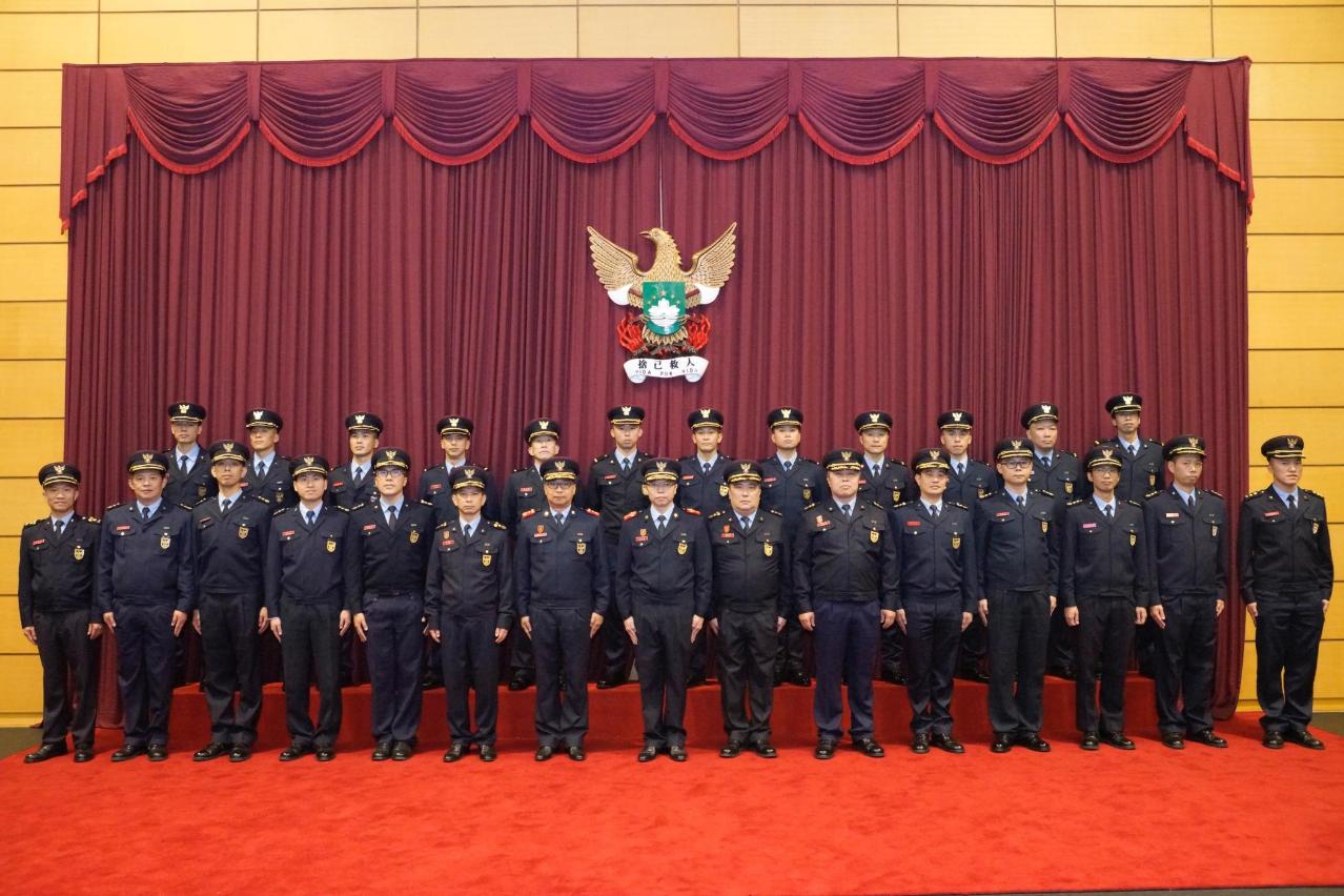 Durante a cerimónia, o Comandante do CB, Leong Iok Sam, o 2.º Comandante Chao Ka Cheong, o 2.º Comandante Substituto Au Io Weng e as chefias de várias subunidades do mesmo colocaram os novos distintivos junto do pessoal promovido, de modo a estimular-lhes a exercer as suas funções com total lealdade e empenho e continuar a prestar serviços de qualidade aos cidadãos.