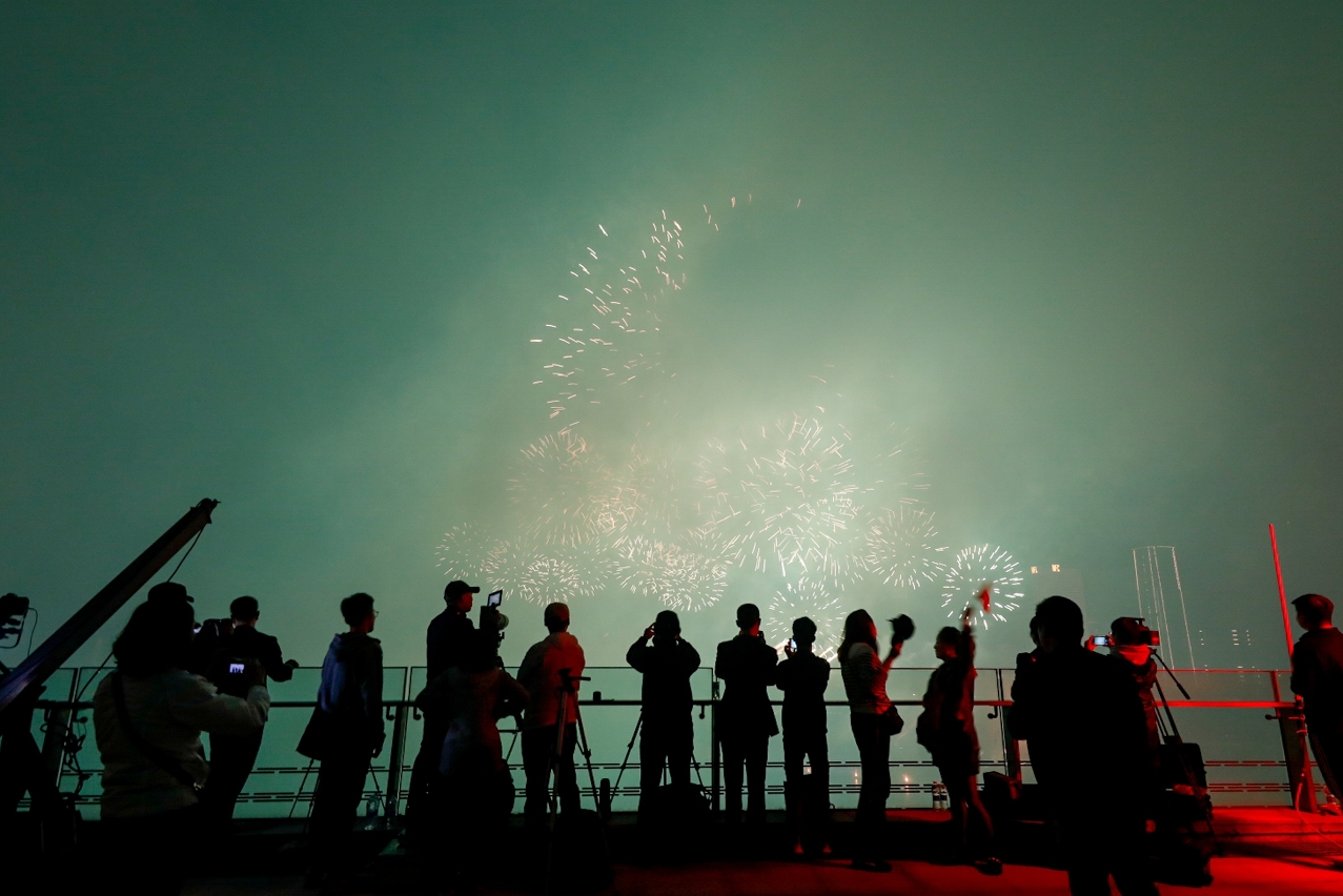 Os capítulos II e III do espectáculo, “Os Anos como Canções, Encontro em Macau” e “Macau e Zhuhai Unidos em Família, Vizinhos Amigos”, contaram com exibições de fogo-de-artifício brilhante e esfuziante, em combinação com desenhos formados por barcos não tripulados e drones, pintando o céu nocturno de Macau e Zhuhai com desenhos cintilantes. O IV e último capítulo do espectáculo, “Cooperação Mútua para Construir em Conjunto a Grande Baía”, para simbolizar ajuda mútua, ganho mútuo, para construir em conjunto uma bela baía, trouxe dezenas de milhares de fogo-de-artifício que coloriu o céu em várias formas, atingindo o auge do evento. Na ocasião, ouviram-se os aplausos e os gritos de apoio do público.