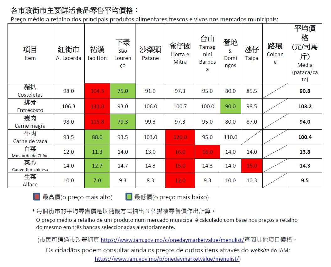 (Os cidadãos podem consultar ainda os preços de outros itens através do website do IAM: https://www.iam.gov.mo/p/onedaymarketvalue/menulist/)