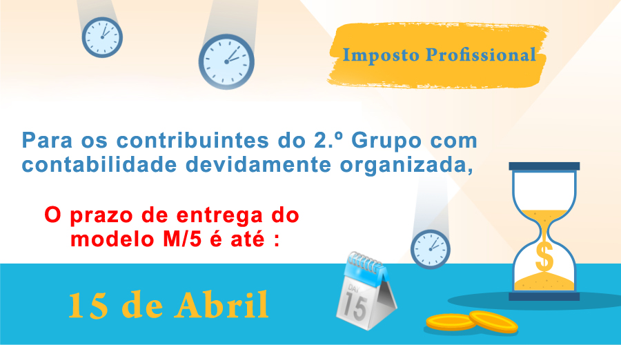 • O prazo de entrega da declaração de rendimentos do Imposto Profissional, pelos contribuintes do 2.º Grupo, é até 15 de Abril