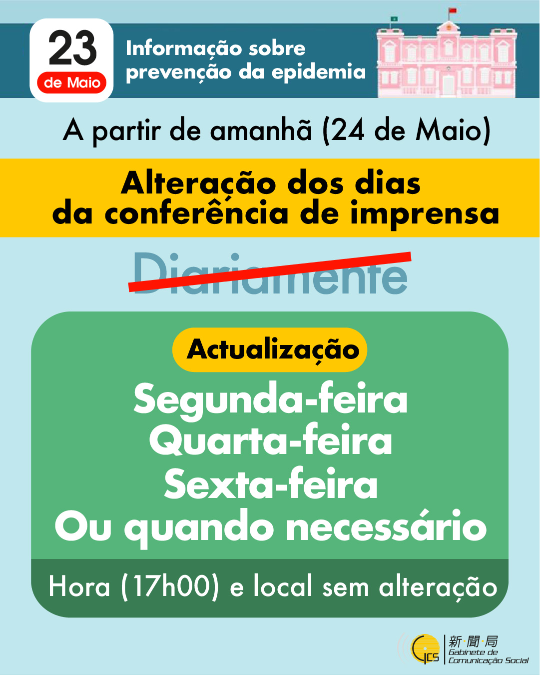 Infografia: Alteração dos dias da conferência de imprensa a partir de amanhã (24 de Maio)