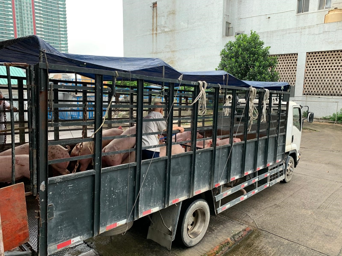 O Governo da RAEM atribui grande importância ao intuito de que seja assegurado o regular fornecimento da carne suína fresca a Macau, pelo que, após o surto da peste suína no Interior da China, apoiou a Sociedade Nam Kuong e a Sociedade Nam Yue, na procura de meios para aumentar o fornecimento de porcos vivos a Macau. A construção, em Doumen, de um ponto de trânsito de animais vivos suscitou forte empenho por parte dos respectivos serviços do Interior da China e revelou-se um decisivo contributo. De salientar que os trabalhos de recepção e de acompanhamento do ponto de trânsito, efectuados pessoalmente pelo dirigente dos Serviços de Alfândega de Gongbei, permitem garantir que a entrada em funcionamento se efectue de acordo com o plano previamente definido, desempenhando um papel preponderante na garantia de um consistente sistema de regular fornecimento de produtos alimentares frescos a Macau.
