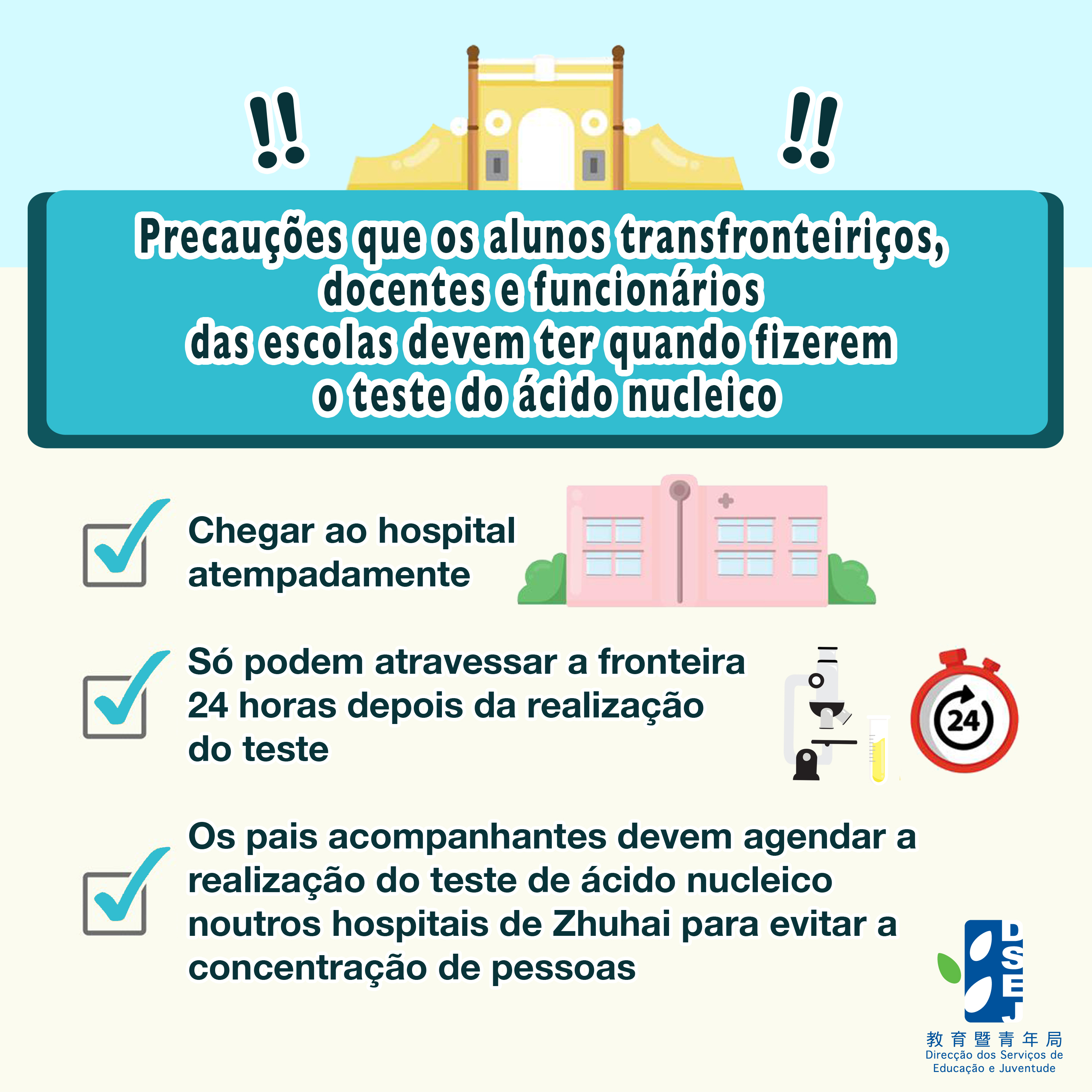 • Precauções que os alunos transfronteiriços, docentes e funcionários das escolas devem ter quando fizerem o teste do ácido nucleico
