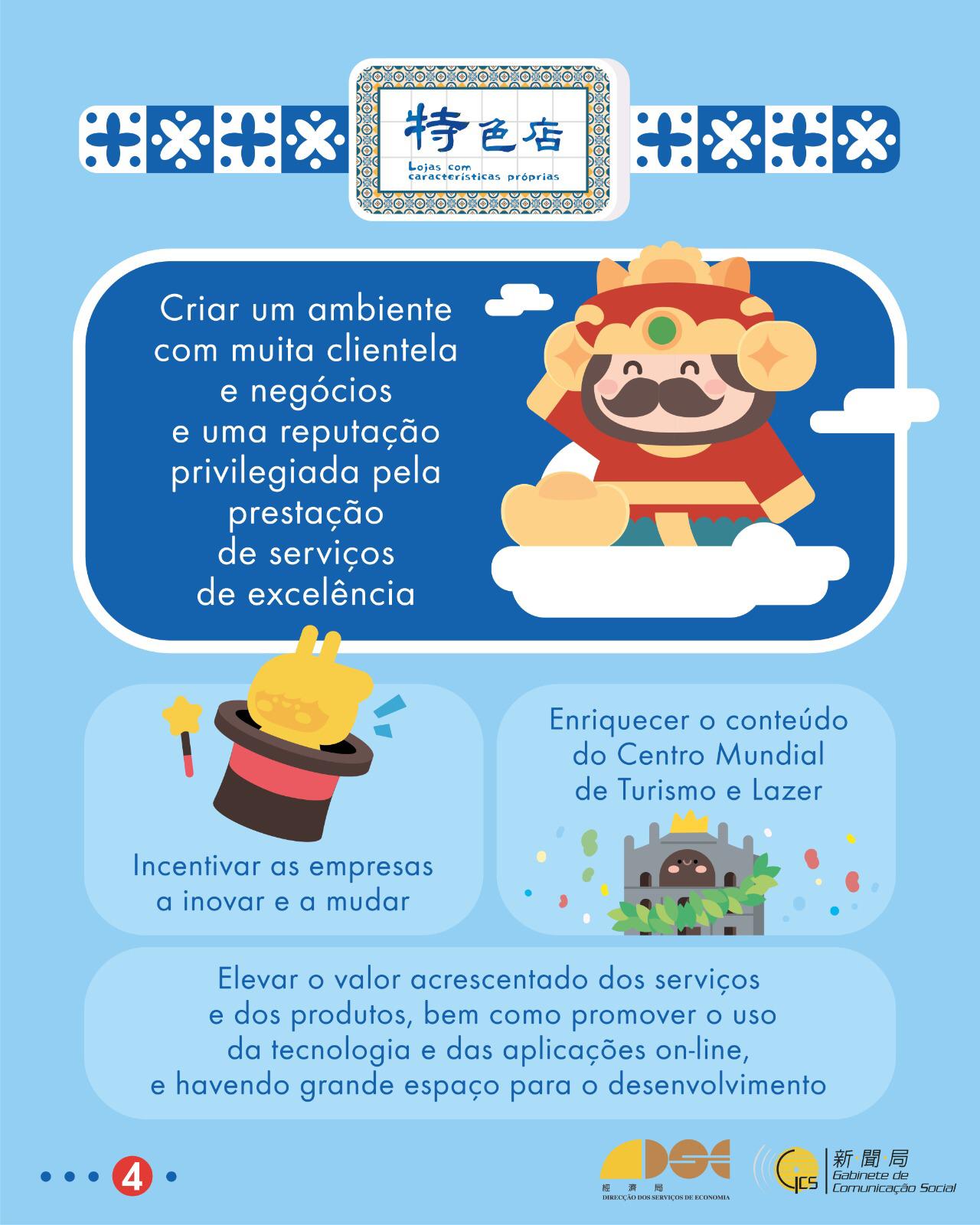 O mesmo Director sublinhou que o Governo da RAEM espera que as PME possam elevar o nível da gestão de exploração, a qualidade da produção e dos serviços através do lançamento do “Plano das Lojas com Características Próprias”, criando um ambiente com muita clientela e uma reputação privilegiada pela prestação de serviços de excelência, a fim de enriquecer o conteúdo de Macau como Centro Mundial de Turismo e Lazer. O Governo da RAEM irá, de acordo com os resultados obtidos, promover gradualmente junto de outros bairros comunitários, no sentido de formar mais PME e estabelecimentos comerciais com características próprias e vitalidade.