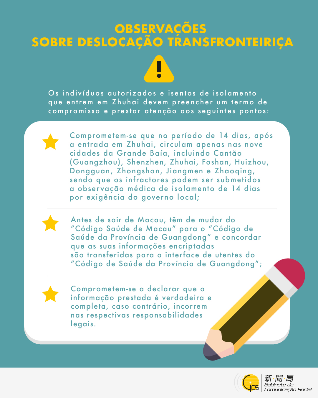 Infografia-Observações sobre deslocação transfronteiriça para os indivíduos autorizados e isentos de isolamento que entrem em Zhuhai