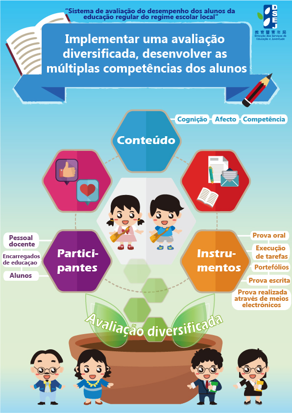O diploma legal define as formas de avaliação e as disposições de transição e retenção de ano das escolas, promovendo, nas mesmas, a elaboração de um sistema de avaliação próprio, que consista, principalmente, na prática da avaliação diversificada e na promoção do sucesso escolar dos alunos. Como as formas de avaliação, nomeadamente, a avaliação formativa, sumativa, especializada e aferida, estão já determinadas na “Lei de Bases do Sistema Educativo Não Superior”, o “Sistema de avaliação do desempenho dos alunos” regulamenta, em maior grau, a definição de quatro formas de avaliação e os respectivos objectivos e estabelece que “a avaliação dos alunos deve ser principalmente a formativa, que é realizada de forma diversificada”.
