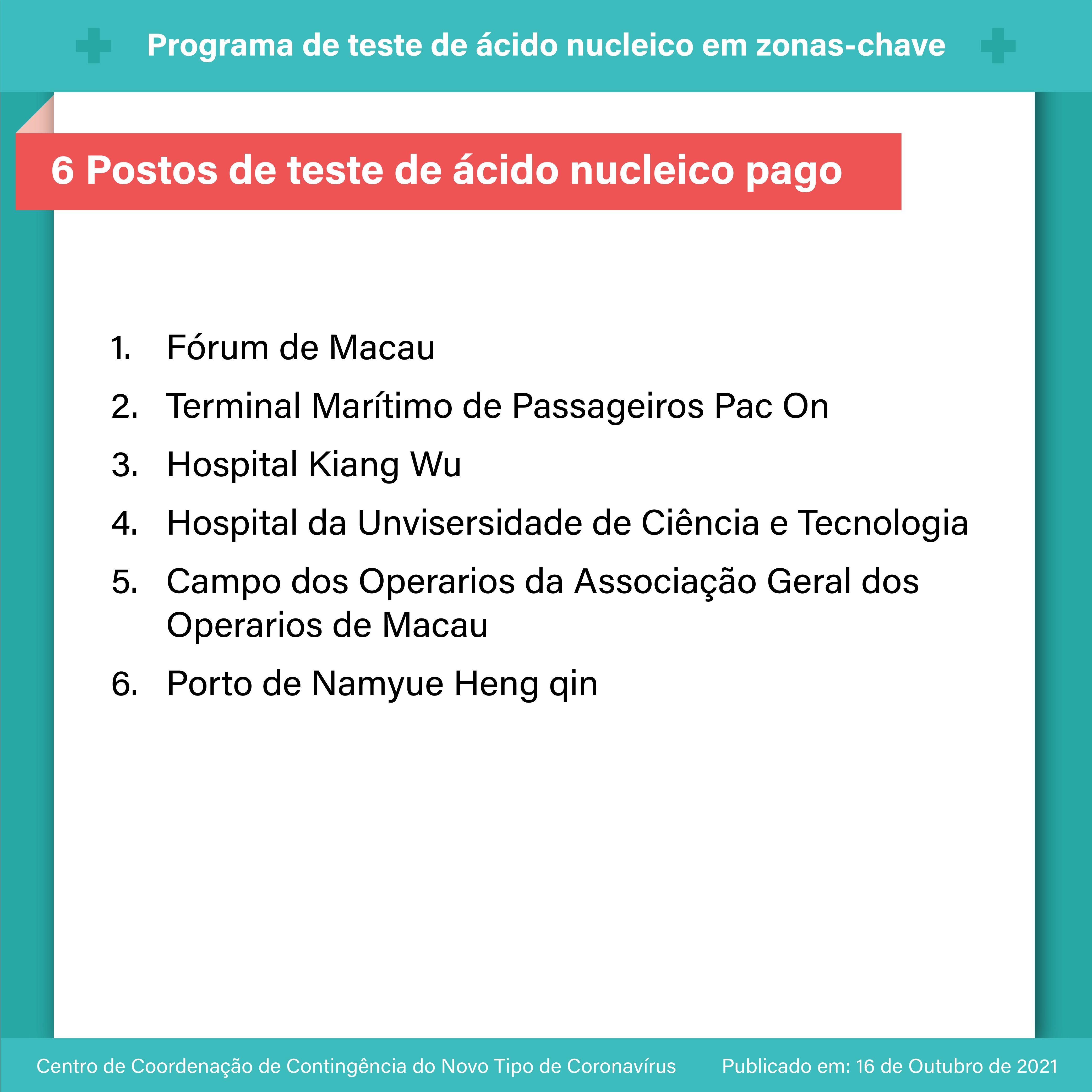 【Infografia】: O programa de teste de ácido nucleico em zonas-chave terá início no dia 17 de Outubro