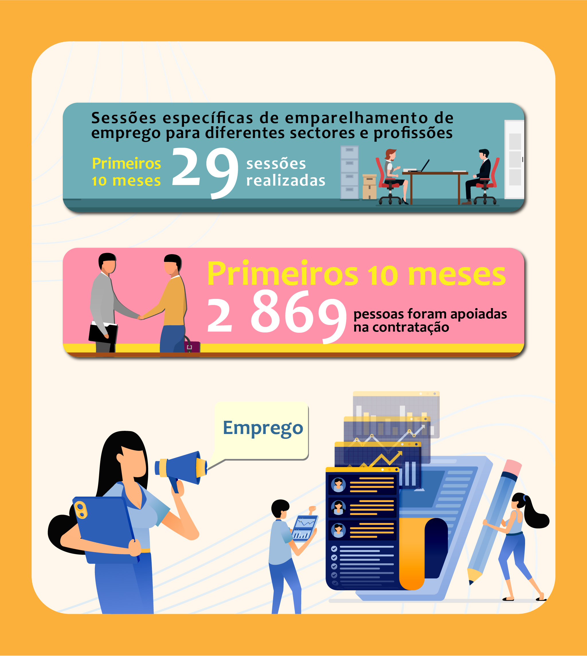 2 869 pessoas apoiadas na contratação nos primeiros dez meses