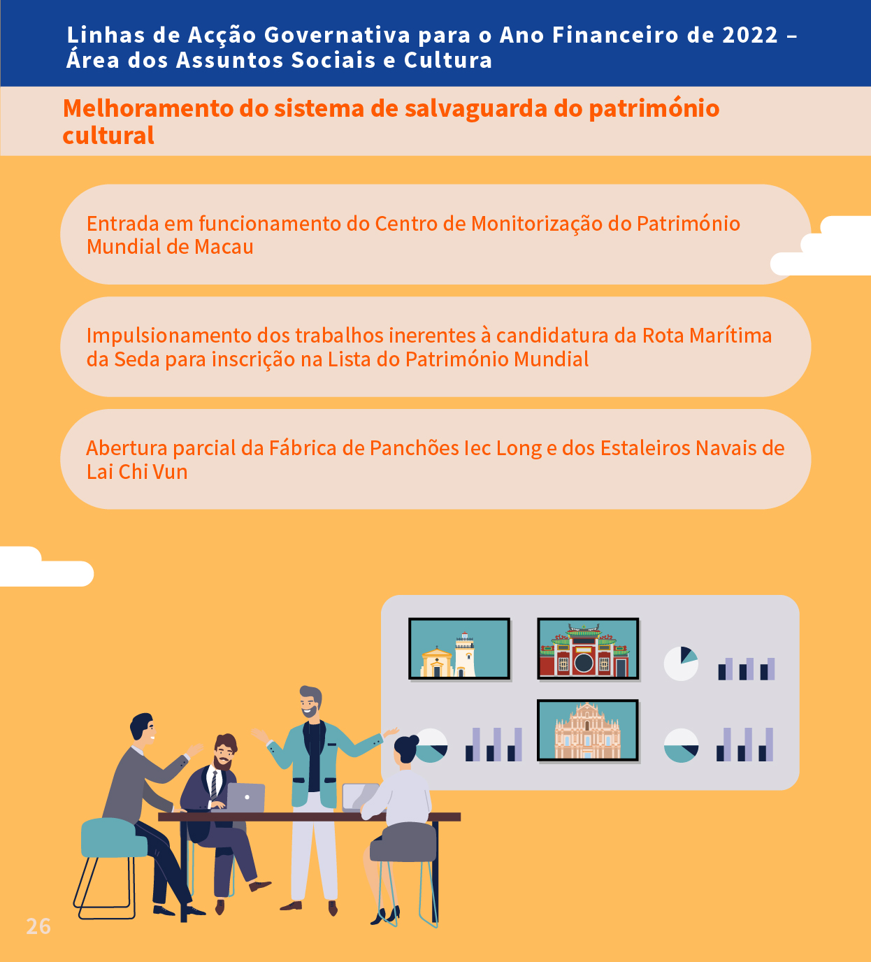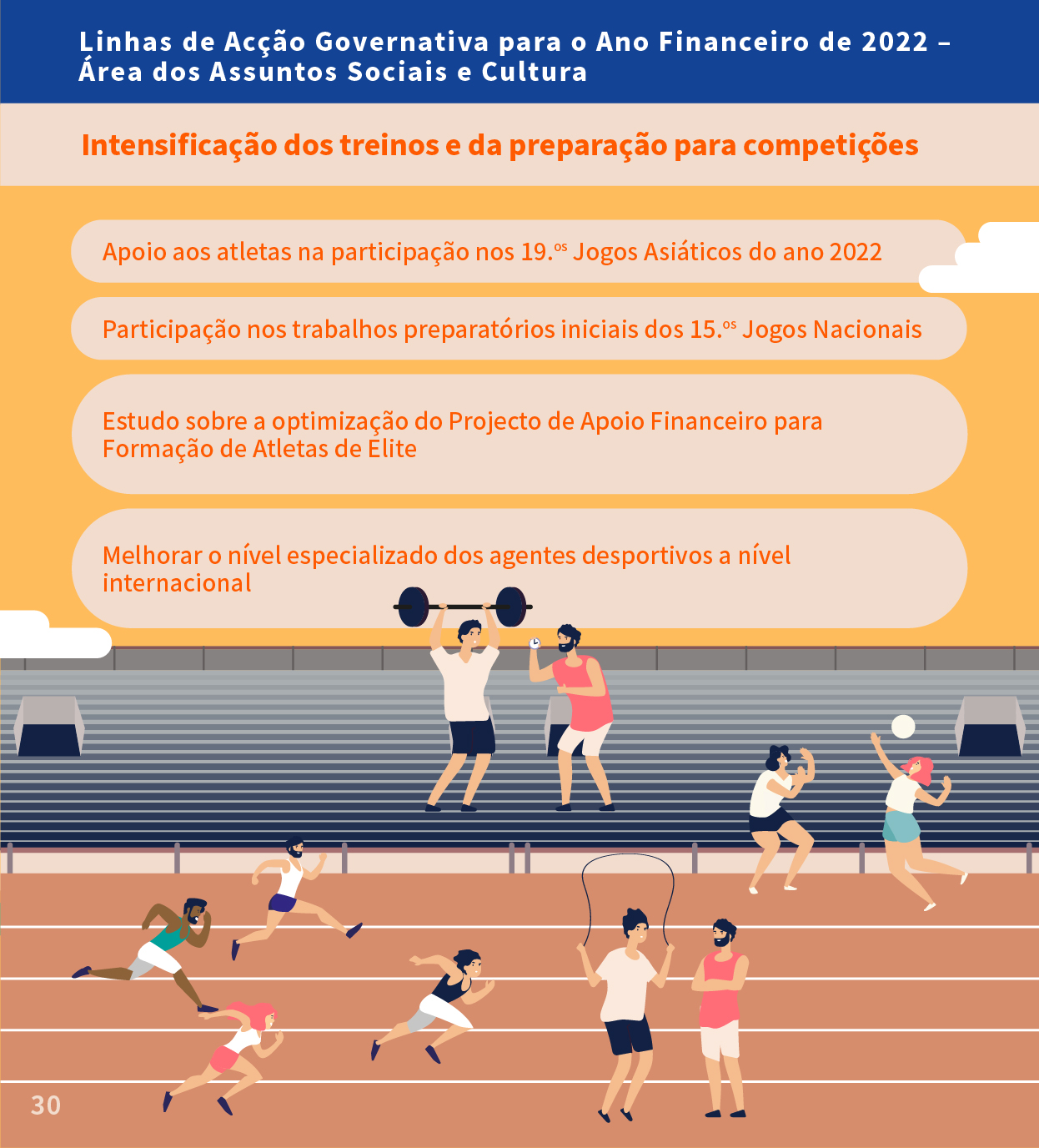 Infografia das Linhas de Acção Governativa para o Ano Financeiro de 2022 na Área dos Assuntos Sociais e Cultura - Nos domínios da Cultura e do Desporto