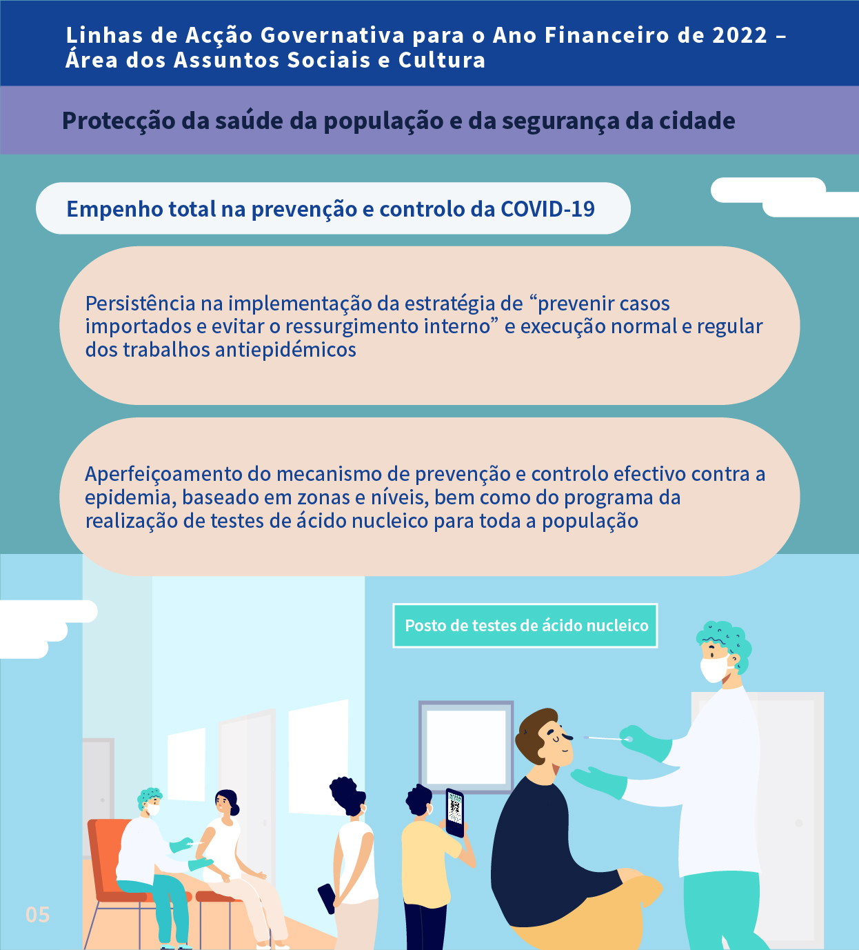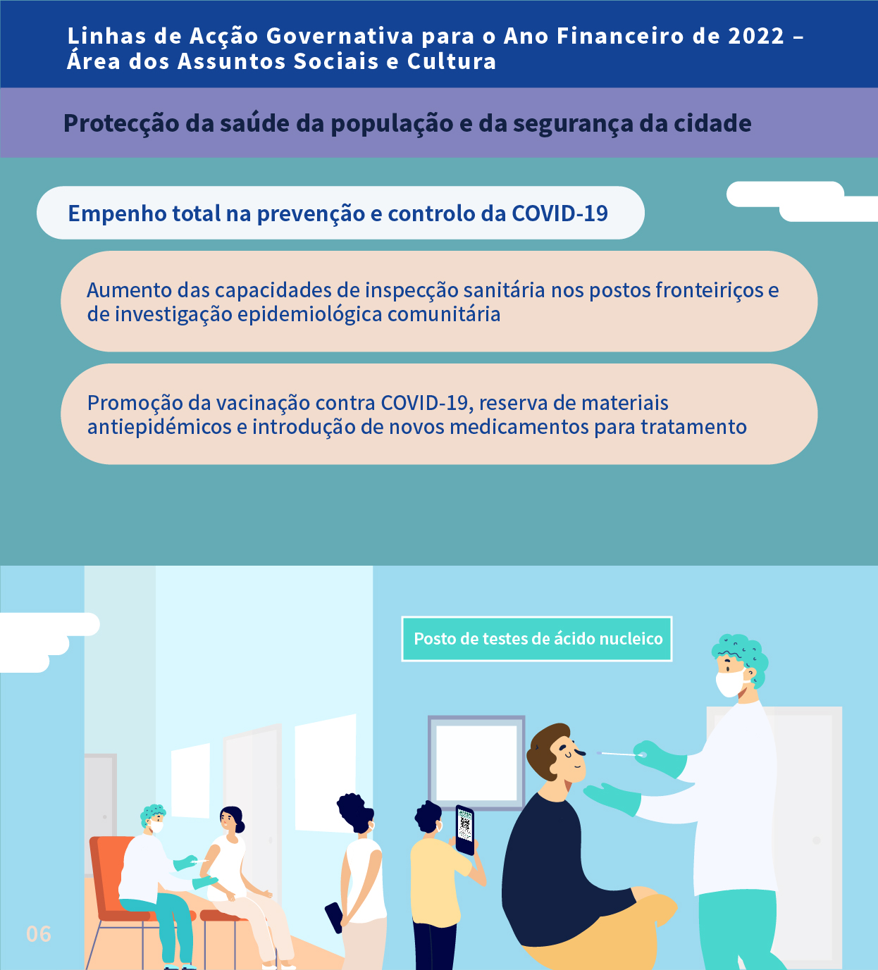 Infografia das Linhas de Acção Governativa para o Ano Financeiro de 2022 na Área dos Assuntos Sociais e Cultura - No domínio da Saúde