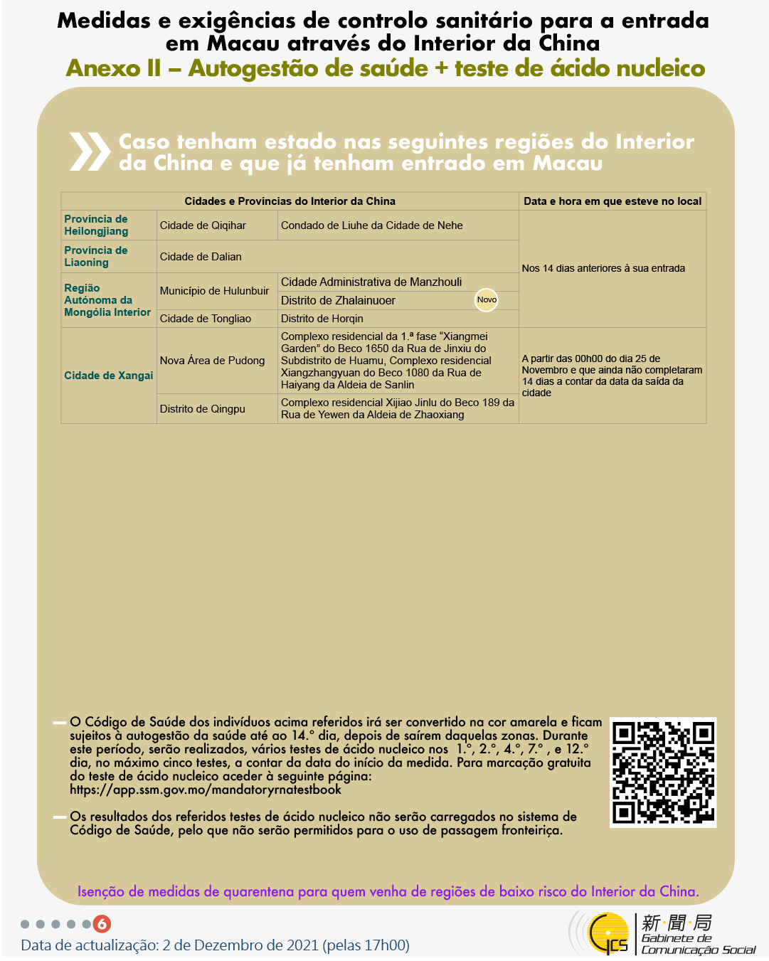 (Infografia)Medidas e exigências de controlo sanitário para a entrada em Macau de indivíduos de diferentes identidades, actualizadas no dia 2 de Dezembro de 2021