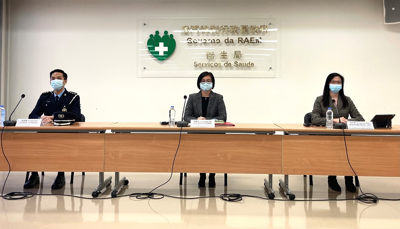 Estiveram presentes na conferência de imprensa: a Chefe do Departamento de Comunicação e Relações Externas da Direcção dos Serviços de Turismo, Dr.ª Lau Fong Chi, o Chefe da Divisão de Relações Públicas do Corpo de Polícia de Segurança Pública, Dr. Lei Tak Fai e a Coordenadora do Núcleo de Prevenção de Doenças Infecciosas e Vigilância de Doença do Centro de Prevenção e Controlo da Doença dos Serviços de Saúde, Dr.ª Leong Iek Hou.