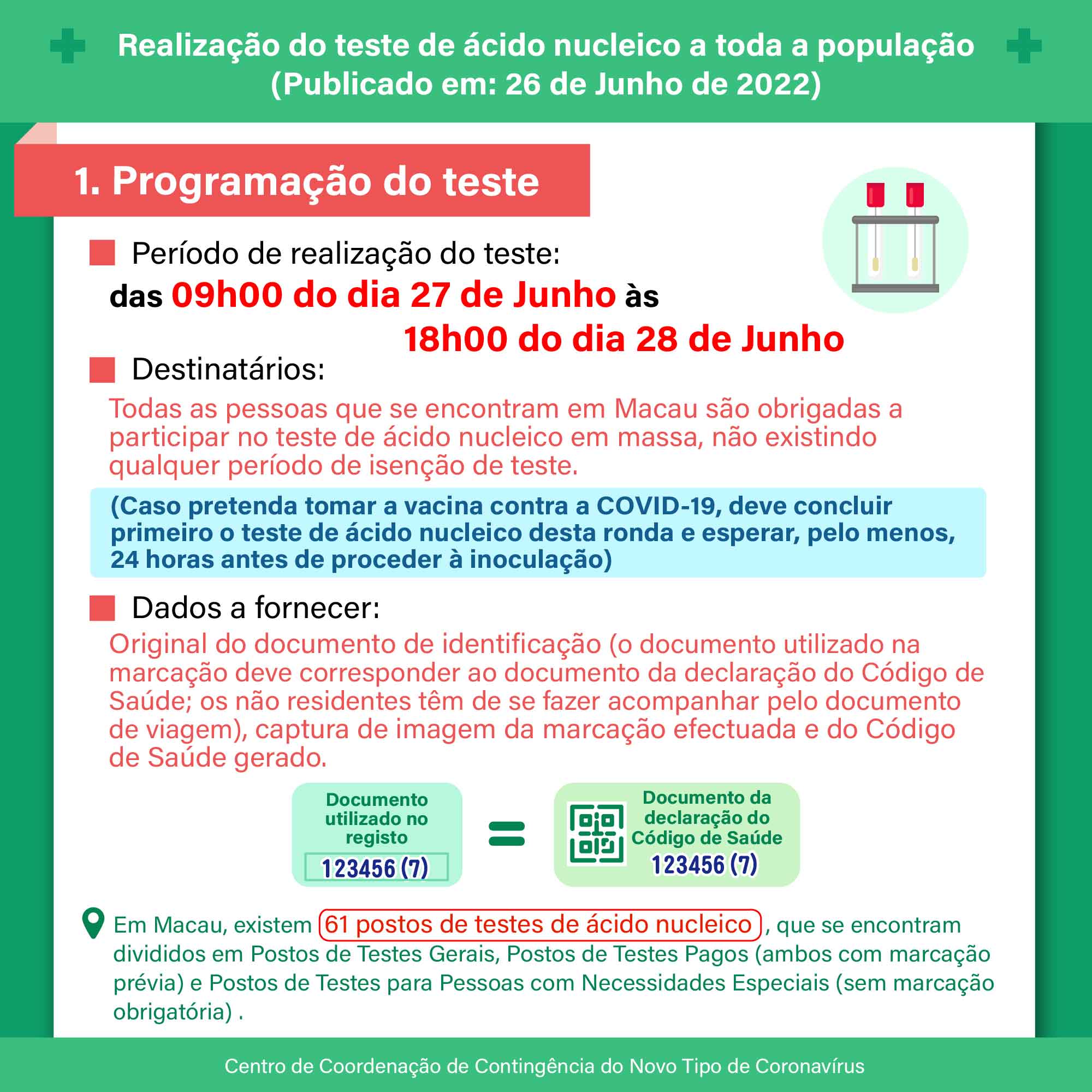 (Infografia) Teste de ácido nucleico a toda a população (das 09h00 do dia 27 de Junho às 18h00 do dia 28 de Junho de 2022)