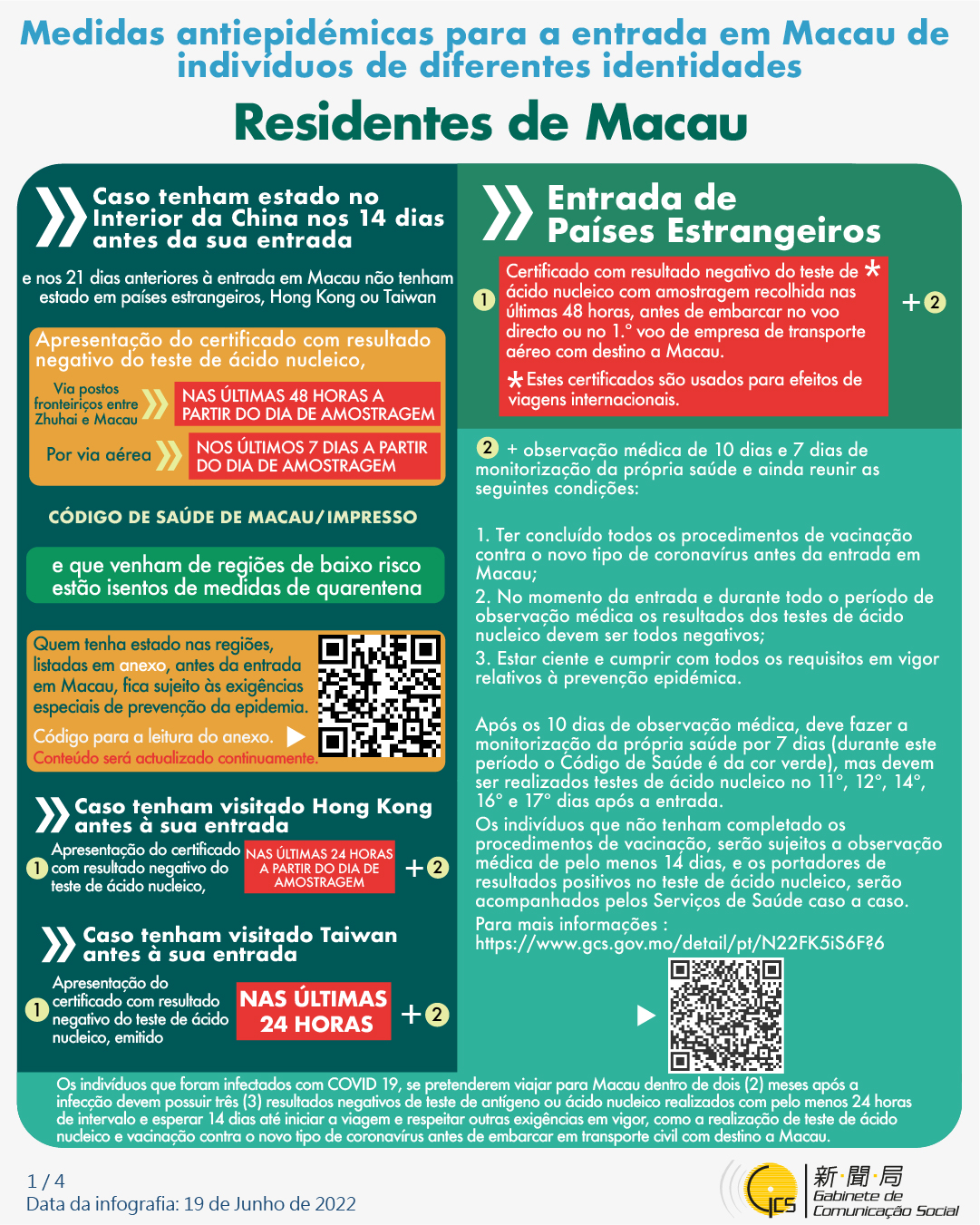 (Infografia)Medidas antiepidémicas para a entrada em Macau de indivíduos de diferentes identidades, actualizadas no dia 18 de Julho de 2022