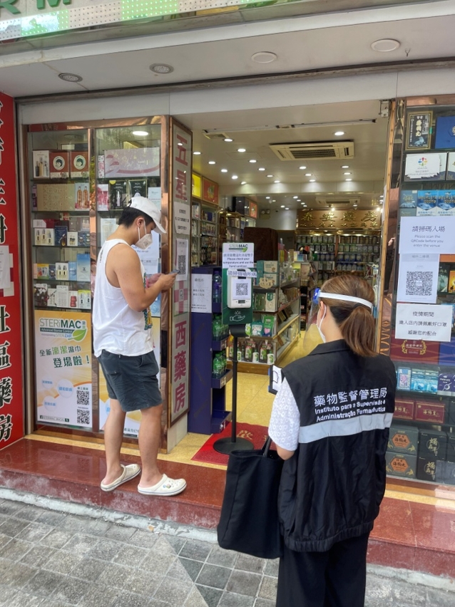 No primeiro dia (dia 23) do “período de consolidação” de prevenção epidémica, o Instituto para a Supervisão e Administração Farmacêutica (ISAF) reforçou as inspecções às farmácias, farmácias chinesas e drogarias, verificando os registos de autoteste de antigénio e teste de ácido nucleico no código de saúde dos trabalhadores dos estabelecimentos, alertando os directores técnicos, farmacêuticos, farmacêuticos de medicina tradicional chinesa e médicos de medicina tradicional chinesa para assegurar o funcionamento dos estabelecimentos cumpre o despacho n.º 123/2022 do Chefe do Executivo e as relativas orientações de prevenção epidémica, bem como garantir todos os trabalhadores realizar teste de ácido nucleico a cada dois dias em datas específicas e teste rápido de antigénio todos os dias.