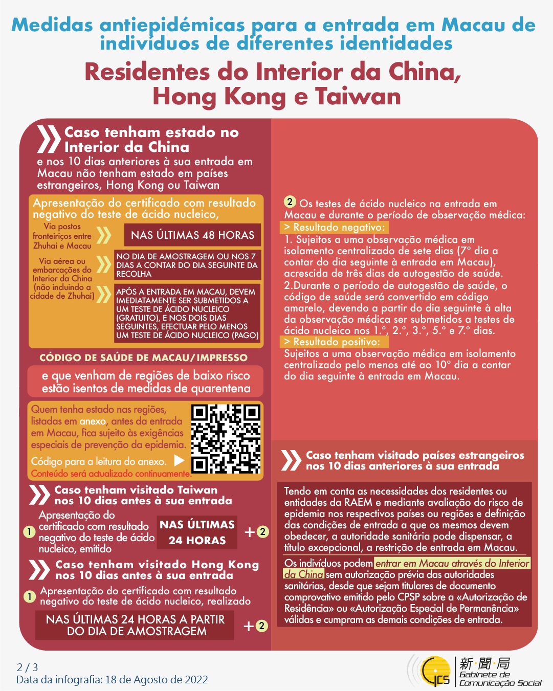 (Infografia) Medidas antiepidémicas para a entrada em Macau de indivíduos de diferentes identidades, actualizadas no dia 23 de Agosto de 2022