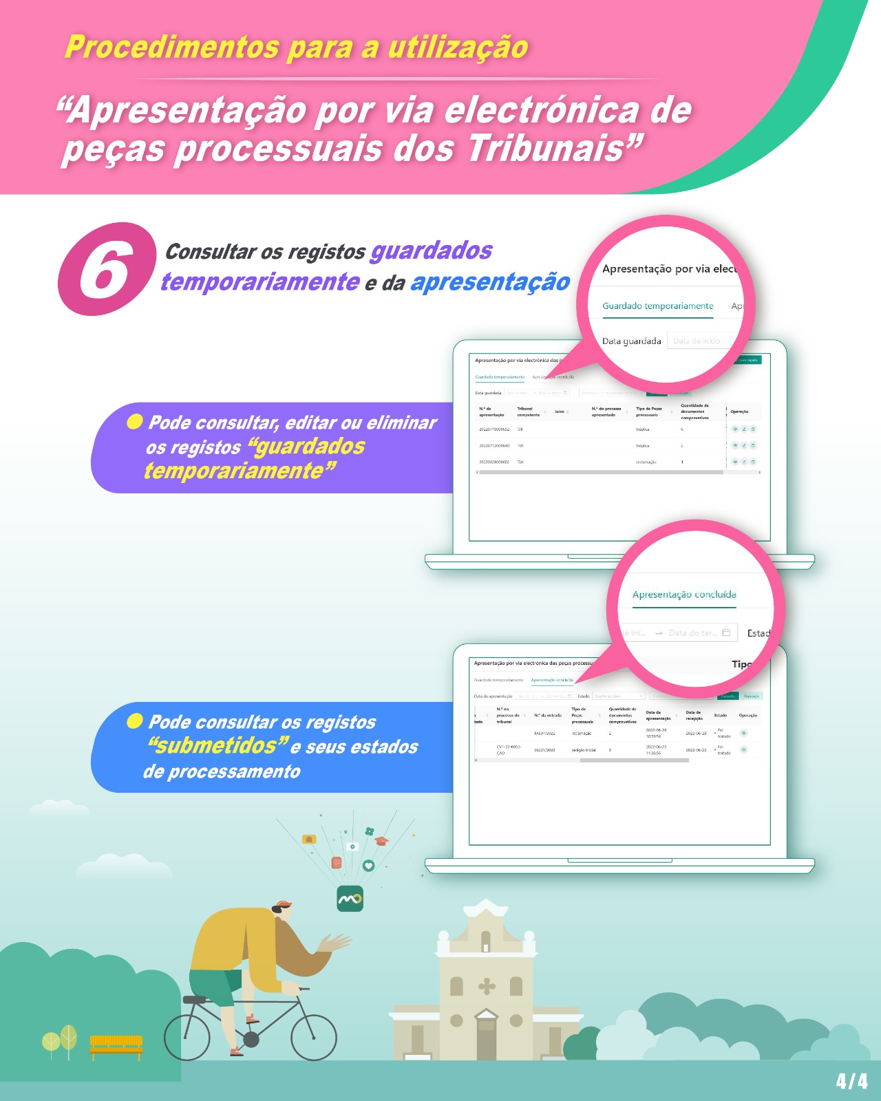 A partir de 1 de Setembro de 2022, as partes dos processos e seus mandatários judiciais que tenham preenchidos os requisitos legais e observado as regras de utilização definidos por despacho do Presidente do Tribunal de Última Instância, podem optar, voluntariamente, pelo envio electrónico das peças processuais e pagamento electrónico das custas judiciais, não estando condicionado ao horário de expediente dos tribunais e das instituições financeiras.