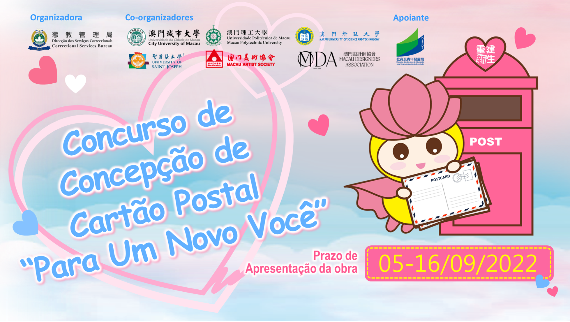 A fim de promover activamente a atenção e apoio do público à reintegração social dos reclusos e jovens internados, a Direcção dos Serviços Correccionais realizou o Concurso de Concepção de Cartão Postal, intitulado “PARA UM NOVO VOCÊ”, no período entre 13 de Maio e 20 de Junho do corrente, para que os estudantes locais pudessem participar neste evento. Todavia, devido à epidemia, o procedimento de aceitação de obras do concurso foi afectado. Assim, após a discussão do júri do concurso, será reaberto o horário para que os participantes apresentem ou complementem os seus trabalhos, de 5 a 16 de Setembro. Ao mesmo tempo, os participantes podem também introduzir as eventuais modificações nos seus trabalhos.