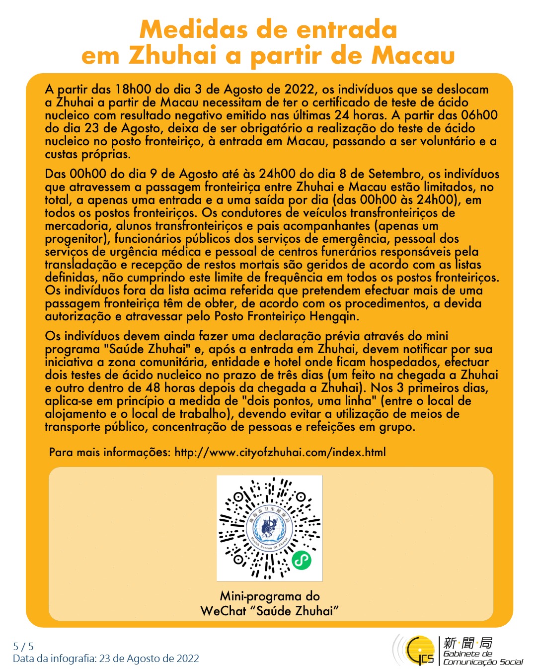 • Medidas de entrada em Zhuhai a partir de Macau