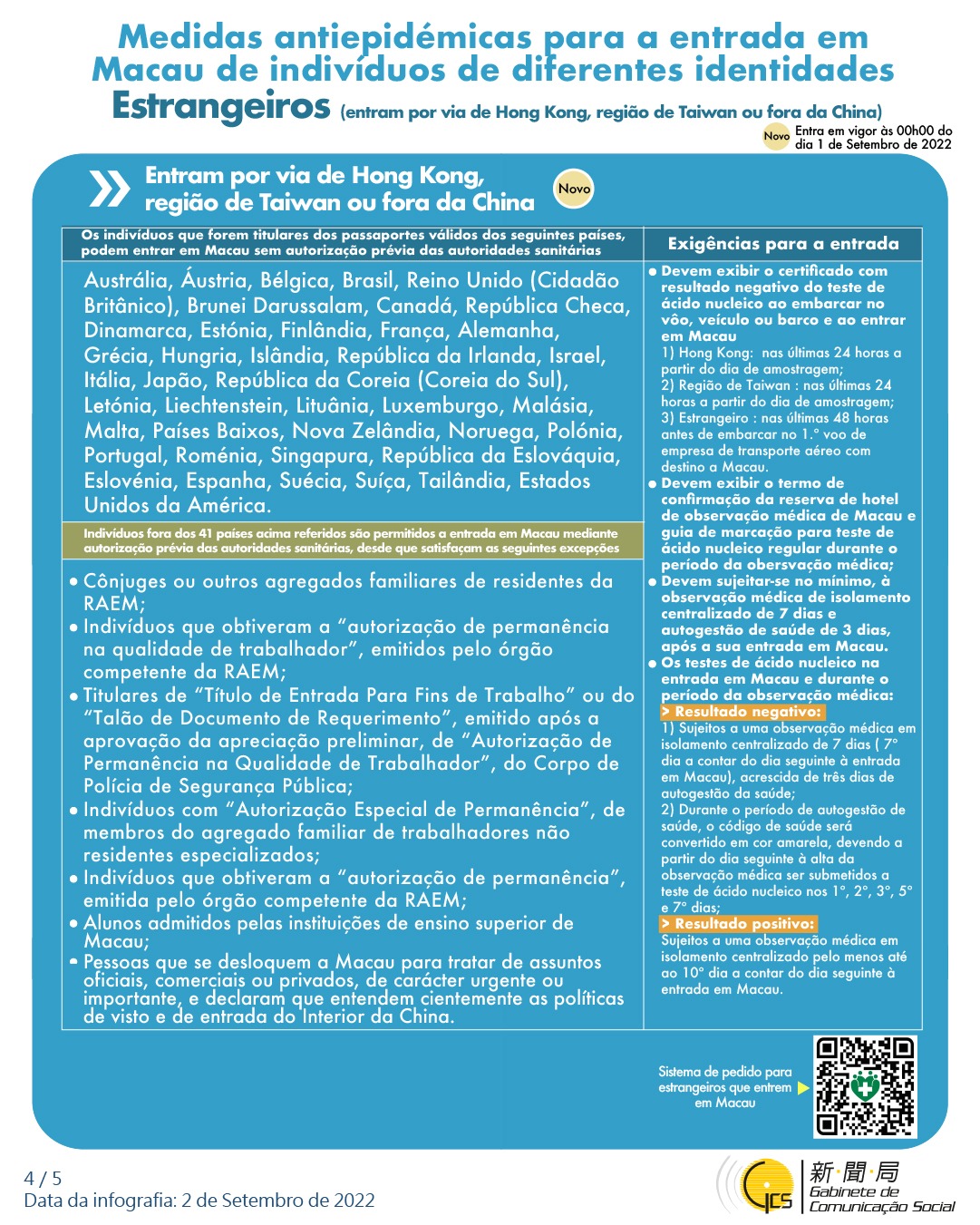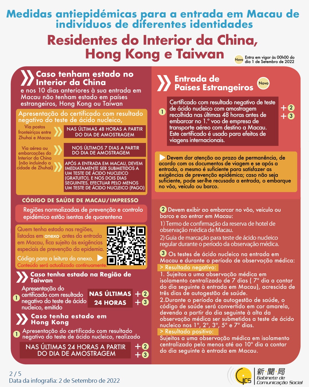 (Infografia) Medidas antiepidémicas para a entrada em Macau de indivíduos de diferentes identidades, actualizadas no dia 1 de Setembro de 2022