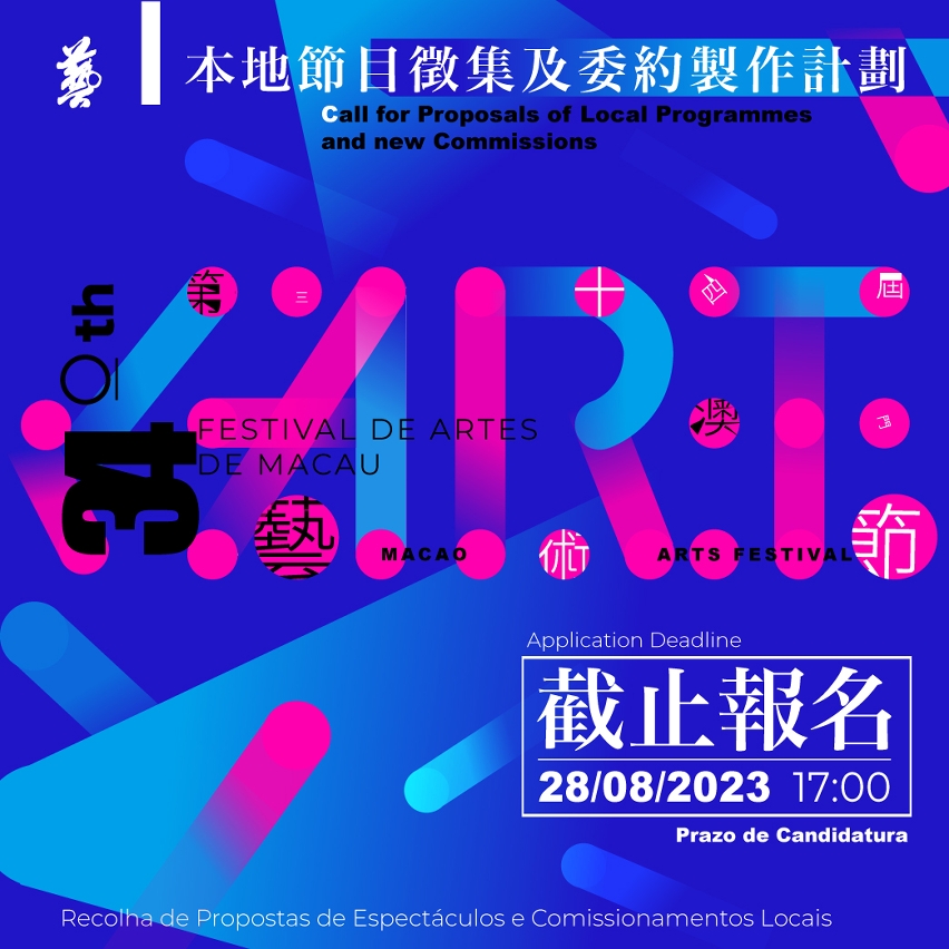 O 34.º Festival de Artes de Macau (FAM), organizado pelo Instituto Cultural (IC), terá lugar em Maio de 2024. Ao longo dos anos, o FAM tem procurado incentivar o desenvolvimento das artes locais e disponibilizar uma plataforma de artes performativas e de intercâmbio artístico. O IC convida as associações artísticas e culturais locais registadas e os artistas a título individual a apresentarem as suas propostas de espectáculos e comissionamentos locais, até ao dia 28 de Agosto de 2023.