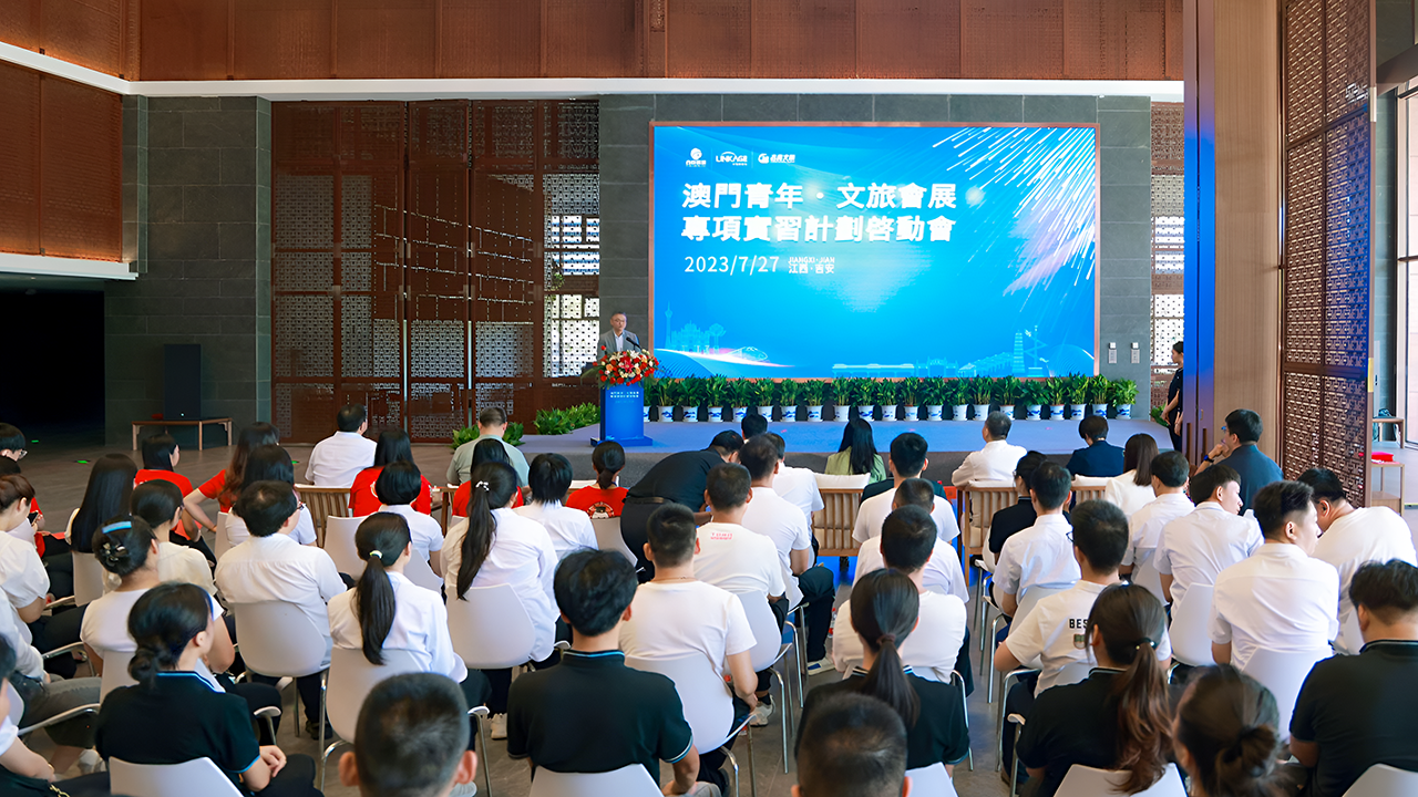 O Plano de estágio especializado dos sectores da cultura, turismo, convenções e exposições para os jovens de Macau organizado pela Direcção dos Serviços para os Assuntos Laborais (DSAL), com a colaboração da Direcção dos Serviços de Assuntos de Subsistência de Hengqin (DSAS) e da Companhia de marketing digital Linkage (Pequim), Limitada (Linkage), tem a sua cerimónia de lançamento realizada com sucesso em 27 de Julho, na cidade de Jian da província Jiangxi. Um total de 16 jovens qualificados de Macau realizar-se-ão o seu estágio nas cidades em que a Linkage tem empreendimento. Tanto a DSAL, como a DSAS e a Linkage destacaram dirigentes e convidaram individualidades para participarem na cerimónia de lançamento, dando início ao plano de estágio que tem duração de oito semanas.