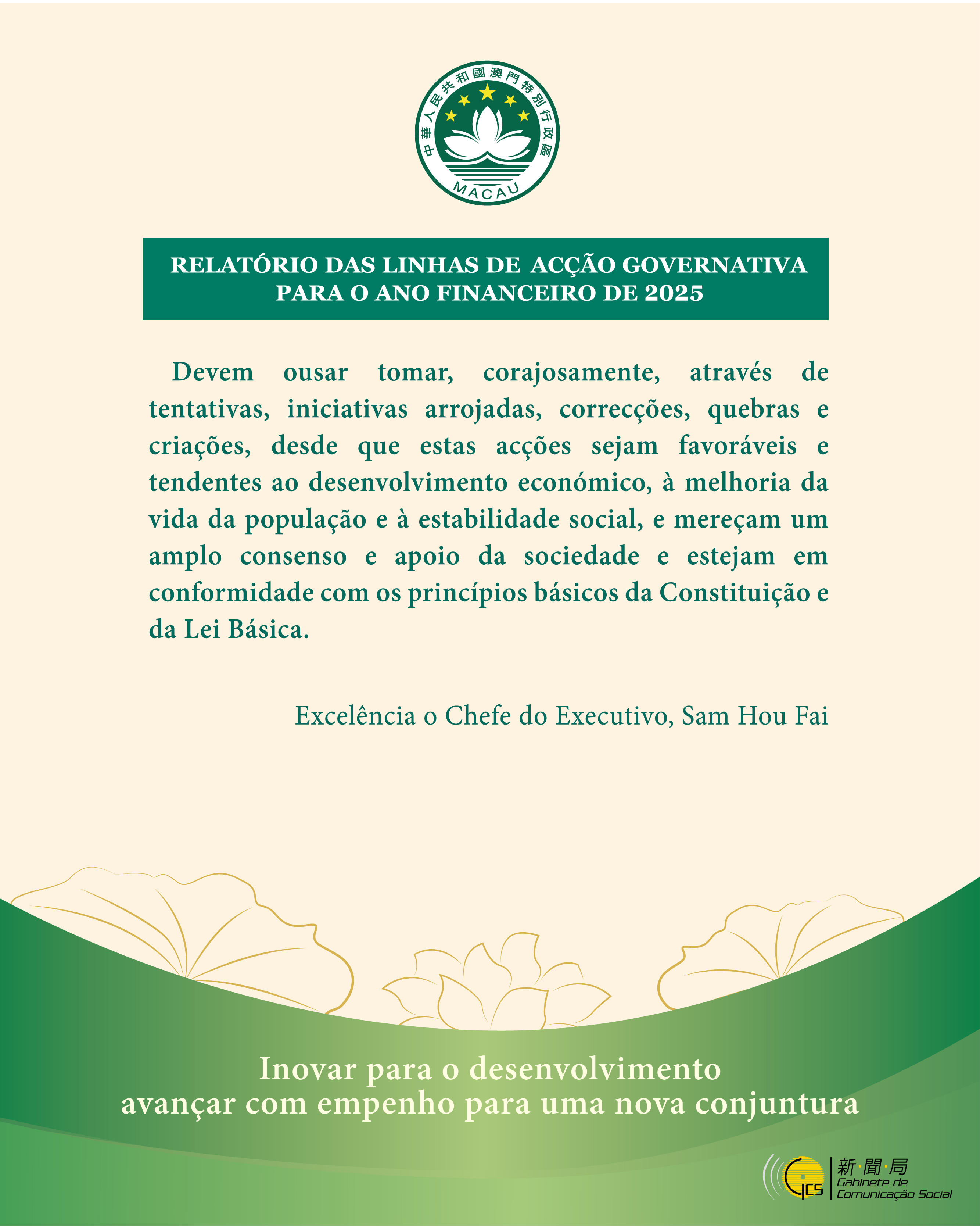 (Infografia) Relatório das LAG 2025 │ Destaques das palavras do Chefe do Executivo (5)