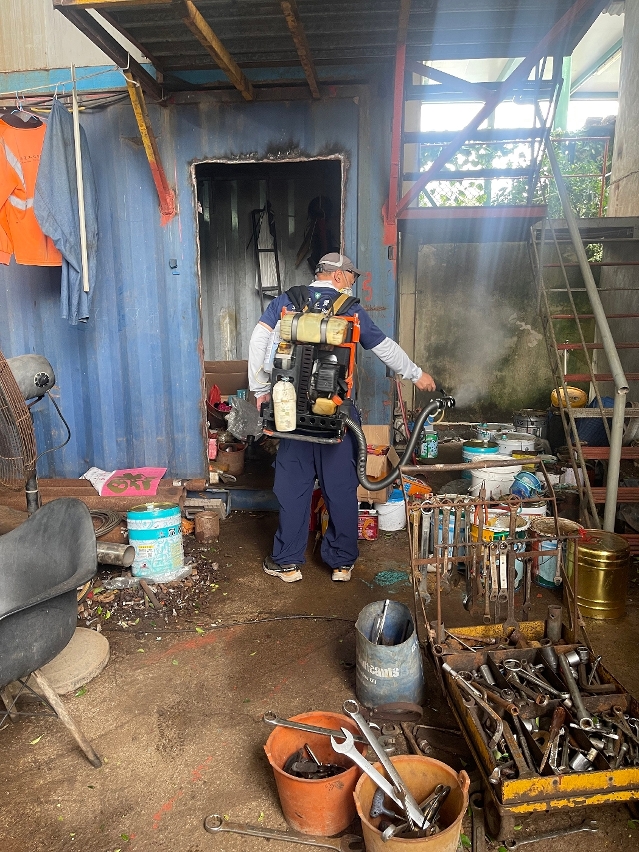 Durante a inspecção, o pessoal dos Serviços de Saúde prestou apoio aos residentes na verificação dos recipientes com águas estagnadas comuns no domicílio, tais como vasos, bases de vasos, etc., tendo verificado a existência de larvas nos recipientes de alguns residentes. Para além disso, verificou-se a existência de recipientes com água estagnada em algumas zonas públicas, alguns dos quais já se encontram com proliferação de mosquitos, o que aumenta o risco de propagação da febre chikungunya, pelo que se deve prestar especial atenção e tomar medidas preventivas.