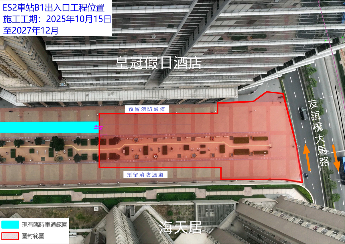 A Direcção dos Serviços de Obras Públicas (DSOP) está a promover, de forma ordenada, a execução de três acessos (entradas e saídas) das estações ES1 e ES2 da Linha Leste do Metro Ligeiro. Em articulação com a execução do acesso B da estação ES2, torna-se necessário alargar a área actualmente vedada na Zona de Lazer da Pérola Oriental, mantendo uma via de acesso para veículos de bombeiros (vide a figura em anexo). As respectivas medidas provisórias serão implementadas de 15 de Outubro de 2025 a Dezembro de 2027. A DSOP procederá à revisão periódica da situação das respectivas medidas e empenhar-se-á nos trabalhos de gestão da execução e de coordenação, procurando concluir as obras no mais curto período de tempo possível, de modo a minimizar o seu impacto aos cidadãos e ao ambiente envolvente. Solicita-se a compreensão dos cidadãos pelos transtornos causados pelas obras.