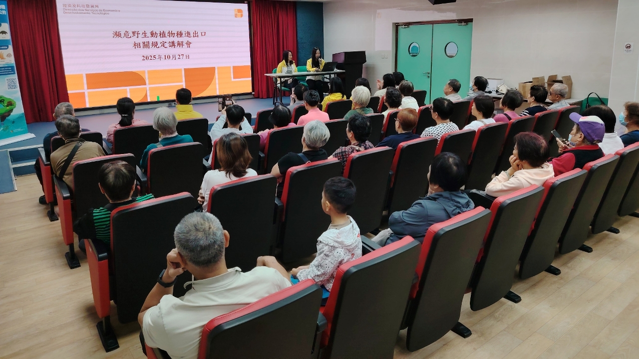 Para efectuar da melhor forma e continuamente os trabalhos de divulgação e sensibilização da Convenção sobre o Comércio Internacional das Espécies da Fauna e da Flora Selvagens Ameaçadas de Extinção (CITES) e a Lei de execução da Convenção sobre o Comércio Internacional das Espécies da Fauna e da Flora Selvagens Ameaçadas de Extinção (Lei n.º 2/2017), a Direcção dos Serviços de Economia e Desenvolvimento Tecnológico (DSEDT) enviou pessoal para visitar, entre Outubro e Novembro, a União Geral das Associações dos Moradores de Macau, a Associação Geral das Mulheres de Macau, a Associação dos Conterrâneos de Kong Mun de Macau, a Aliança de Povo de Instituição de Macau, a Federação das Associações dos Operários de Macau e a Associação Geral dos Chineses Ultramarinos de Macau para apresentar junto da cerca de 600 participantes as regras de Macau sobre a importação e exportação das espécies da fauna e da flora selvagens ameaçadas de extinção.