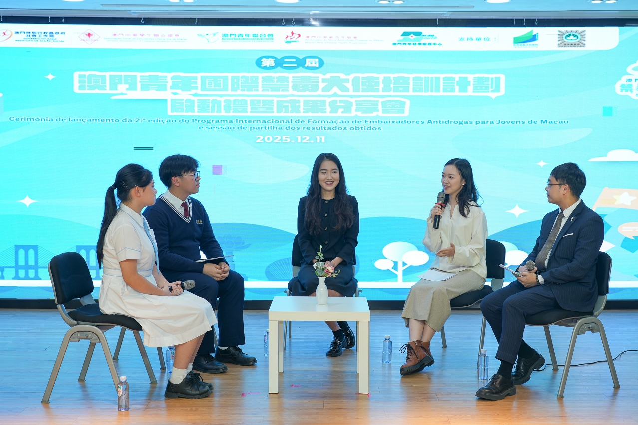 Está aberta a inscrição da “2.ª edição do Programa Internacional de Formação de Embaixadores Antidrogas para Jovens de Macau”, a partir de hoje até 31 de Março de 2026, cujos destinatários são os residentes de Macau com idades entre os 14 e os 23 anos e têm as competências de leitura, escrita, audição e oralidade do inglês e do mandarim, amam a Pátria e Macau, apoiam as acções de combate à droga do País e da RAEM. Os jovens aprovados pelo júri irão participar na diversidade de aprendizagem, nomeadamente, formação de capacidade, aprendizagem experimental, prática, intercâmbio, entre outros. Os jovens com desempenho excelente poderão obter oportunidades de serem convidados para participar no intercâmbio internacional, representar a China na selecção do Fórum da Juventude da Comissão sobre Narcóticos da ONU, e no concurso nacional sobre o conhecimento antidrogas para jovens, entre outras actividades. Para o regulamento da actividade e os detalhes sobre a inscrição, visitar a página electrónica específica, https://antidrugteens.com ou página electrónica de antidroga de Macau, https://www.antidrugs.gov.mo.