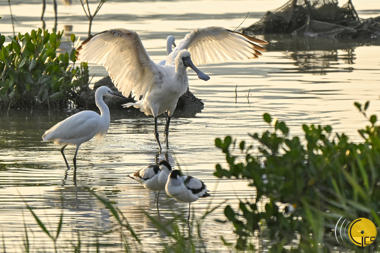 生态保护区有多种动植物,丰富的食物资源吸引了近200种鸟类在此觅食及栖息,其中包括珍稀的黑脸琵鹭。