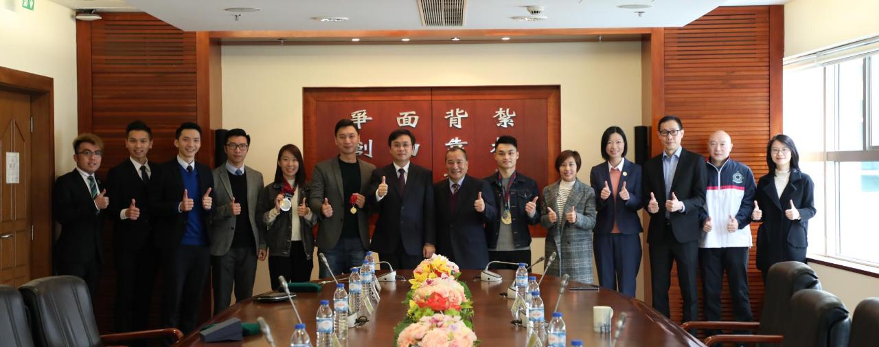 澳门武术总会理事长陈永杰与获澳门特区政府二O一八年度勋章的杰出运动员、同为澳门理工学院校友的黄俊华、尤俊贤及李祎等一行五人,在澳门理工学院校友会理事长黄宇棋陪同下,一月十八日上午到访理工学院,受到院长严肇基、副院长李雁莲、体育暨运动高等学校代校长吴新凡等负责人热情接待,双方就本澳武术运动发展及运动员培养进行了友好交流座谈。