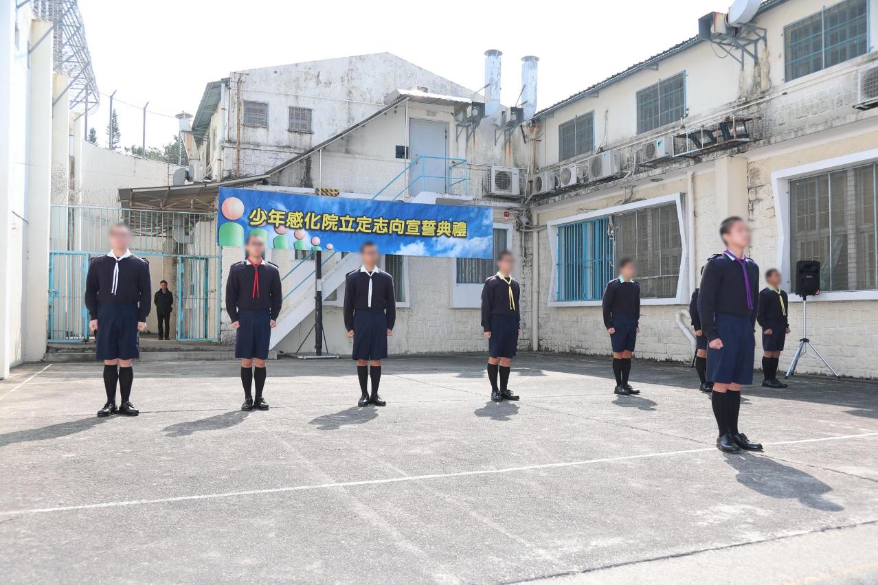 在司令员的号令下,院生精神抖擞、有序步操进入会场。惩教管理局程况明局长致辞表示,去年起局方于少年感化院展开多项重整及优化设施的工程,增添多项新的培训设施和设备,透过持续改善环境,提升院生学习的成效。同时,藉着立定志向宣誓仪式,勉励院生时刻秉持坚毅的意志和决心,努力实现自己的目标和理想。紧接着,由程况明局长及少年感化院余佩琳院长进行监誓,并在一众嘉宾、院生家长和工作人员的见证下,院生整齐列队庄严宣读誓词,誓言声声,点燃激情,立志达成新一年的目标;各人并逐一张贴个人目标的标语,强化自已迈向目标的信念。院生阿诚(化名)有感自身性格较内向,关心父母的言语总是难以启齿,因此定下今年的目标,要勇敢向父母表达关心的情怀。另一院生阿浩(化名)则以“提升学业成绩”为目标,期望新学年的成绩更上一层楼。宣誓后,院生向嘉宾和家属献上«让我留在你身边»和«先苦后甜»两首歌曲,透过温馨感人的歌声,感激家人对他们不离不弃、关怀备至,以及感谢嘉宾和社会各界给予的关爱支持。