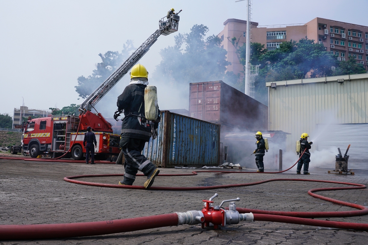 为加强与澳门货柜码有限公司在发生紧急事故时的应急救援工作及协调沟通,消防局于本年3月13日,协助澳门货柜码头有限公司在九澳货柜码头内举行火警疏散演习。