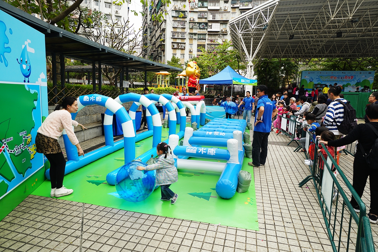 嘉年华于下午2时30分至5时假佑汉街市公园举行,现场设有大型主题游戏“小水点游记”,小朋友手执巨型蓝色球,手足并用穿过重重管道和障碍物,最后把球安全运送到终点,以模拟供澳原水从西江经过泵站、水库、水厂等设施到达澳门,最后供应至每家每户的过程,游戏考验灵活度之余,亦从中认识到澳门的水源从何而来。嘉年华并设有多个以维护管理楼宇自来水系统、节约用水、认识咸潮为主题的摊位游戏和工作坊,有趣互动之余,大人和小朋友亦能从玩乐中学习到节约用水和供水知识。期间更上演了精彩的《威水超人》节水话剧,深受小朋友喜爱的“威水超人”和“水汪汪姐姐”与市民玩节水游戏。嘉年华现场气氛热闹,吸引了众多市民参与。