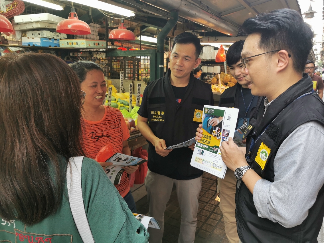 9月26日至30日期间,司警局人员前往新马路、板樟堂、水坑尾、荷兰园及高士德等人流密集区份展开防盗防骗宣传,向商户和市民派发防罪宣传单张及纪念品,呼吁店铺负责人及店员做好防范措施,尤其在人流高峰期必须格外留神,以免不法份子浑水摸鱼;提醒市民在人多拥挤的地方或购物时,要特别注意保管好个人财物;如外出旅游亦需做好家居防盗措施;如遇到罪案发生,应立即向警方举报。