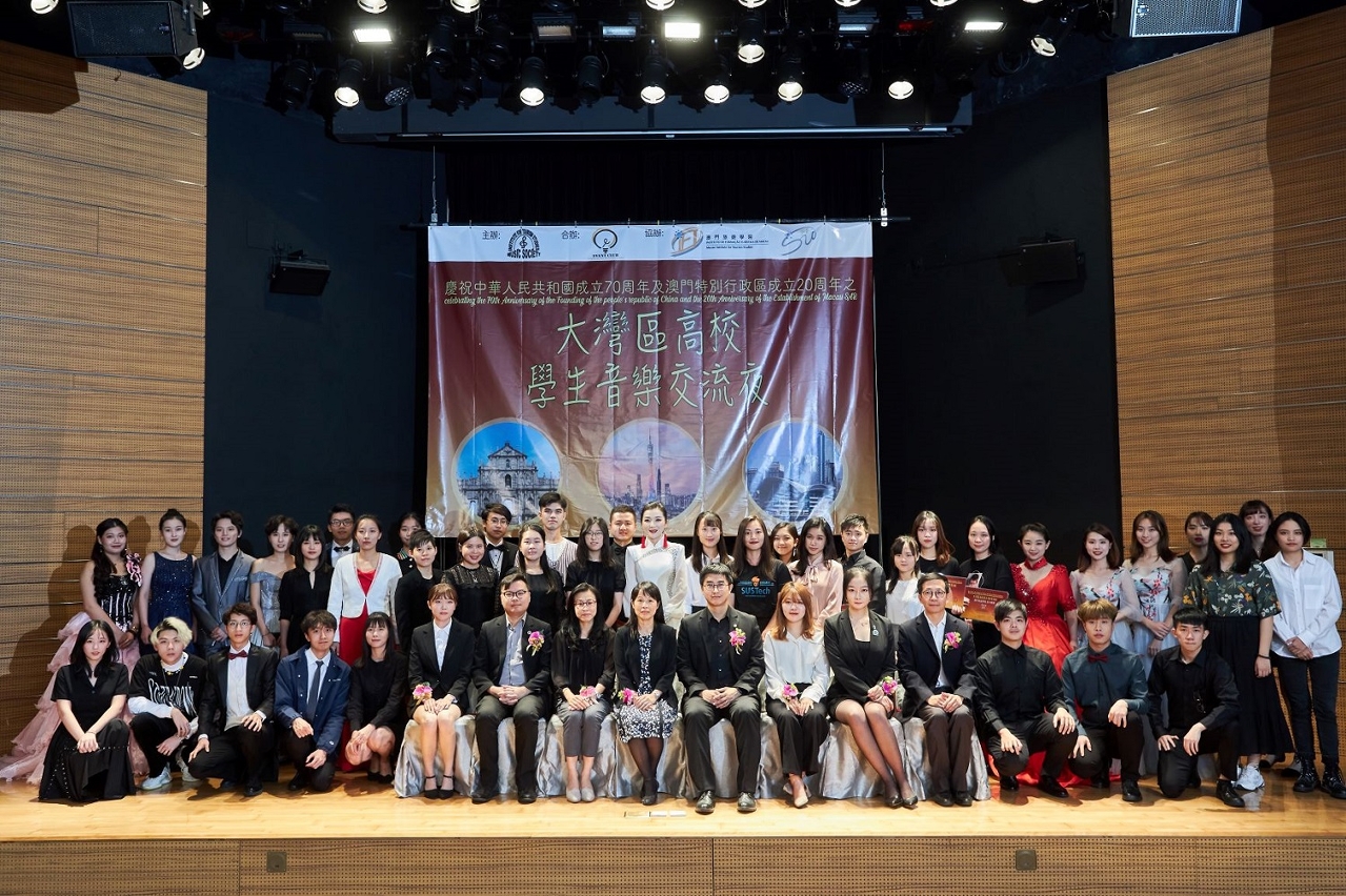 为庆祝中华人民共和国成立70周年以及澳门特别行政区成立20周年,澳门旅游学院于11月16日举办了 “大湾区学生高校音乐交流夜”。是次活动由旅游学院学生会音乐学会主办、旅游学院学生会会展学会合办,以及澳门旅游学院及旅游学院学生会协办。