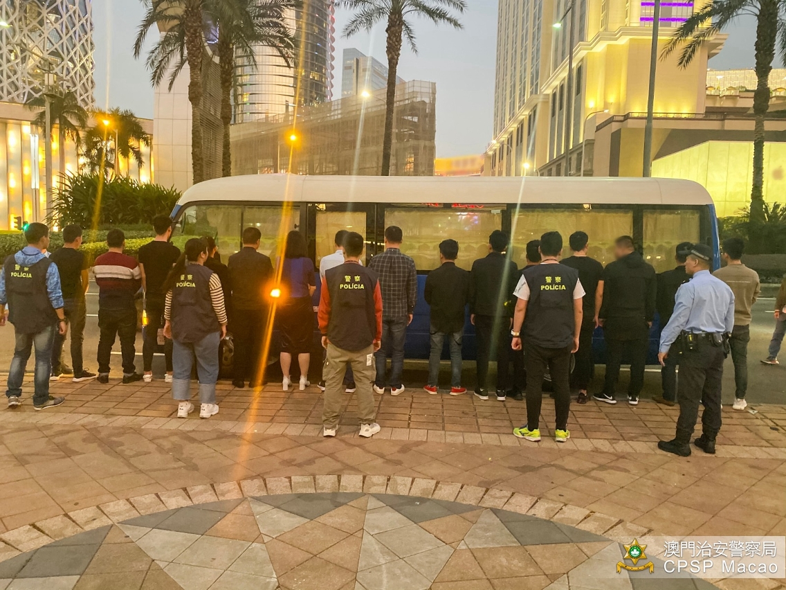 在警察总局统筹下,治安警察局展开「雷霆2019」行动,确保本澳社会安宁及公共秩序安全。于11月25日,澳门警务厅、海岛警务厅及情报厅共派出31名人员,分别于新口岸及路氹城一带截查可疑人士,以及本澳各区巡查多间宾馆,打击各种不法行为。