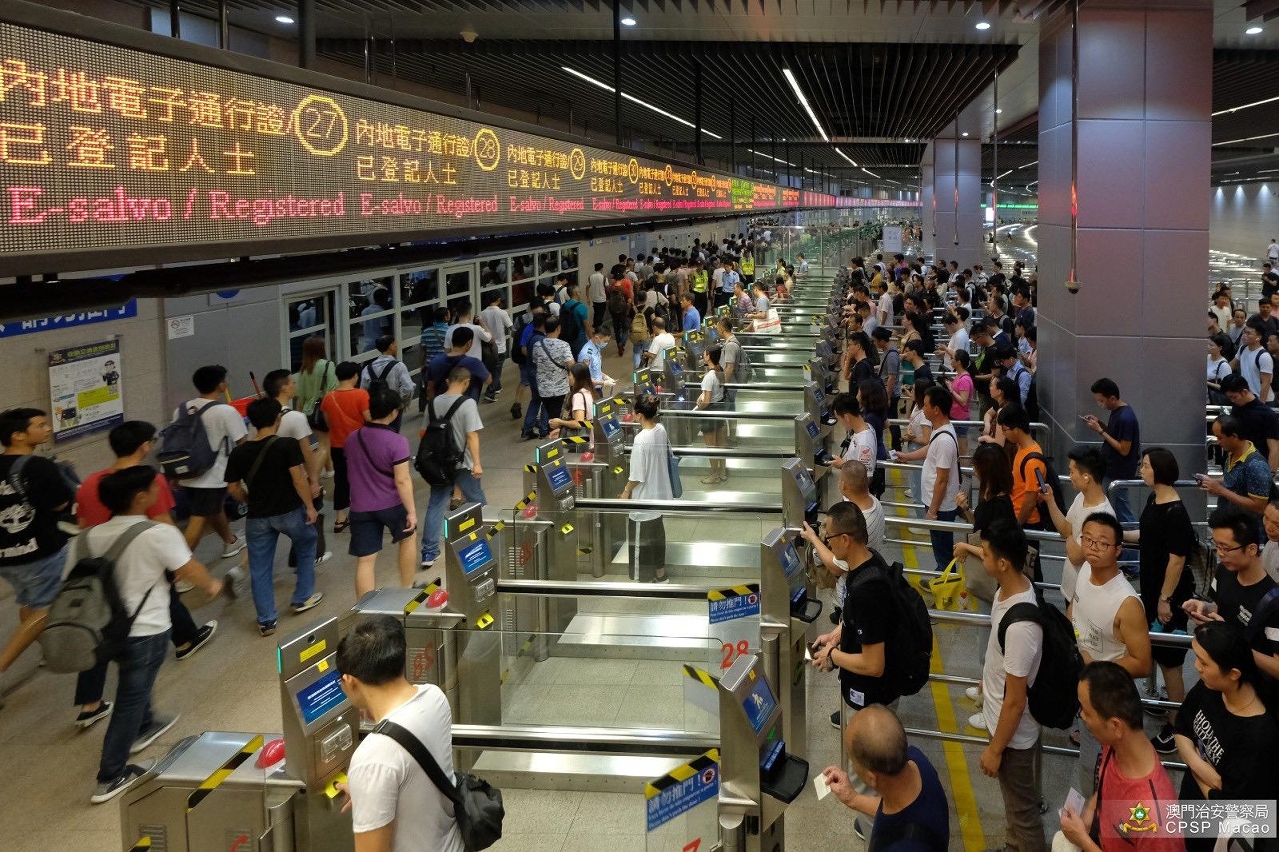 不少旅客在参与庆祝活动过后经路氹城出入境事务站(莲花口岸)离境,警方已安排足够警力保障通关畅顺及维持秩序,亦已经协调穿梭巴士公司增加路氹城出入境事务站与横琴口岸之间的巴士班次。
